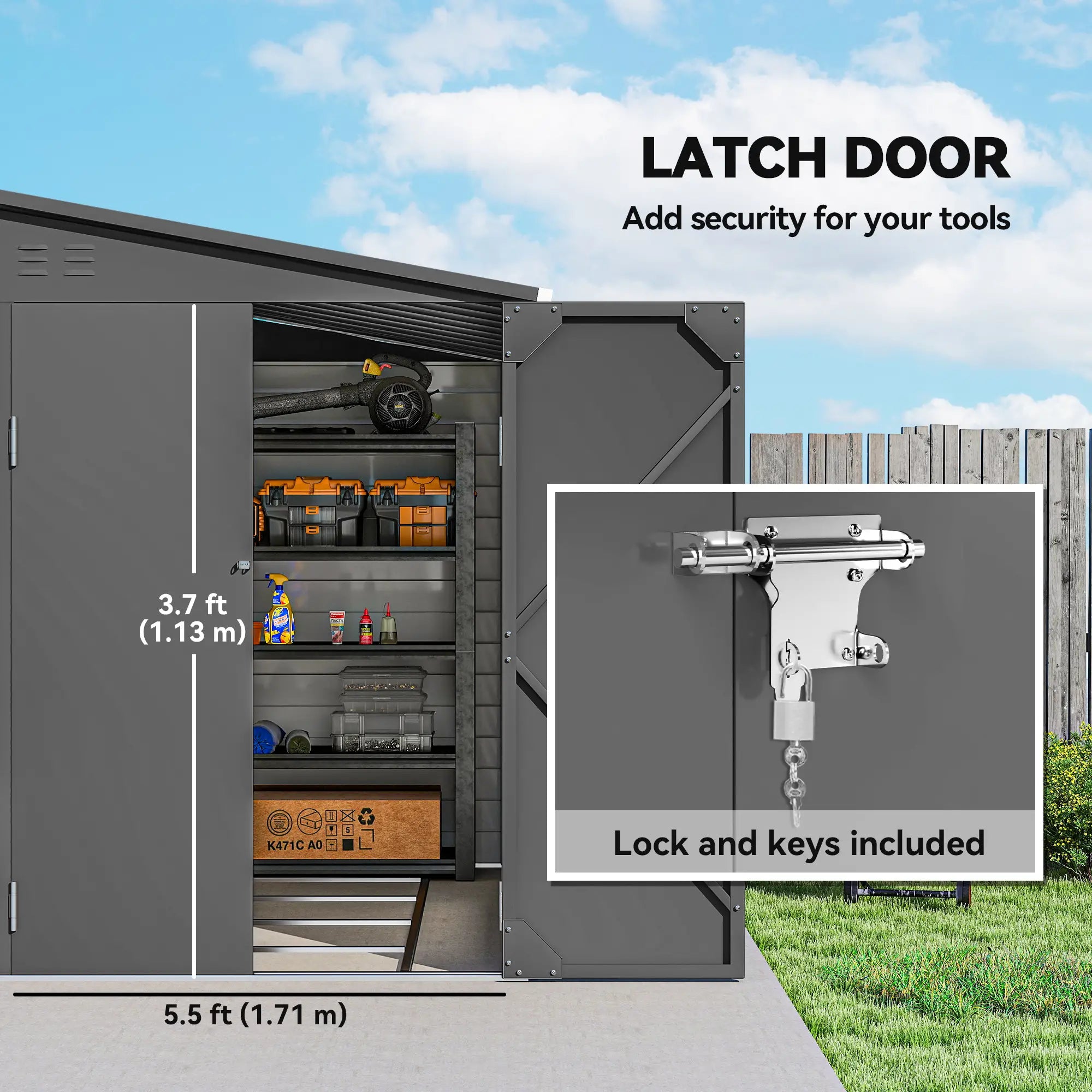 - Provides ample outdoor storage space for backyard organization