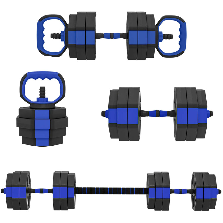 4-in-1 Adjustable Dumbbell Set, Kettlebell, Barbell, Dumbbell, 66lbs, Blue
