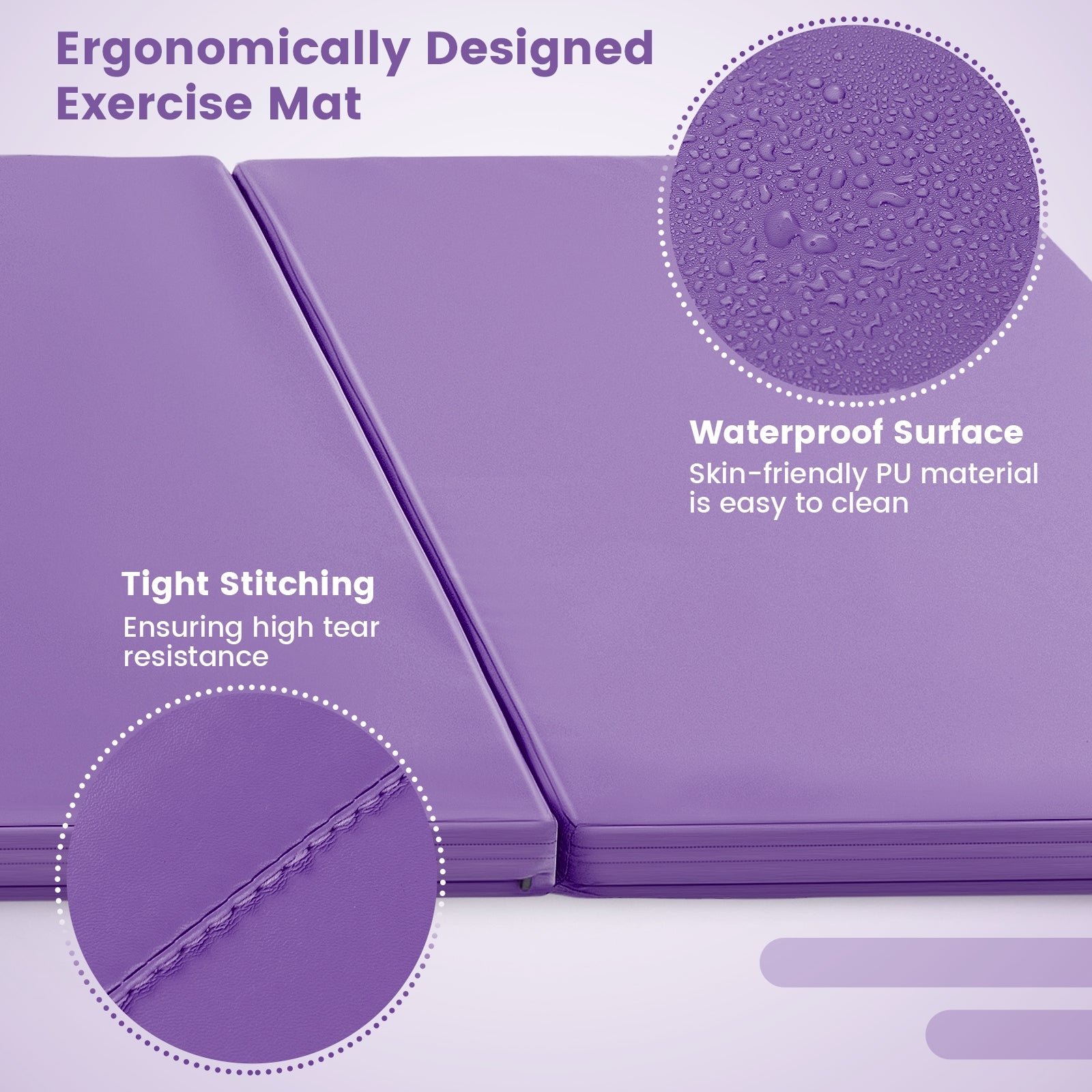 4-Panel PU Leather Folding Exercise Mat, Purple