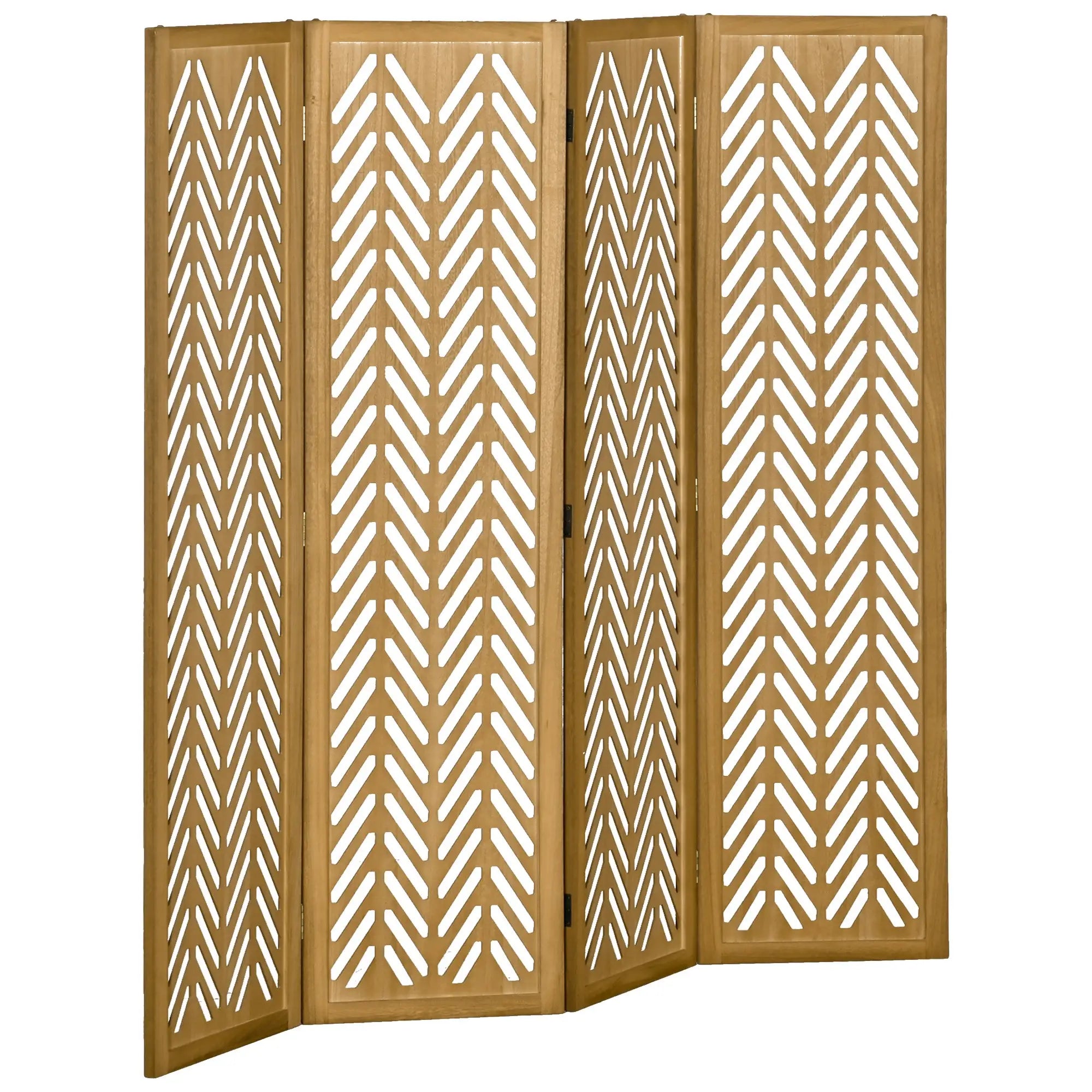 4 Panel Room Divider, 5.6ft Tall, Wood Folding Privacy Screen, Light Brown