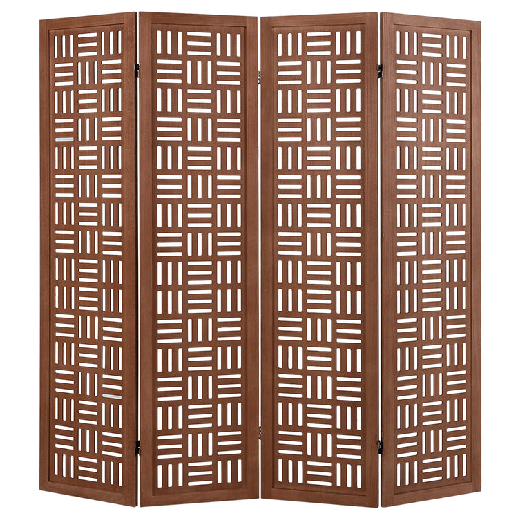 4-Panel Solid Wood Room Divider Folding Partition Stand, Walnut