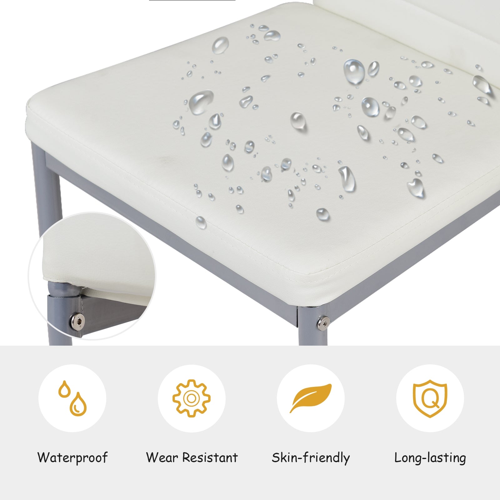 4 Pcs PVC Leather Dining Side Chairs, White