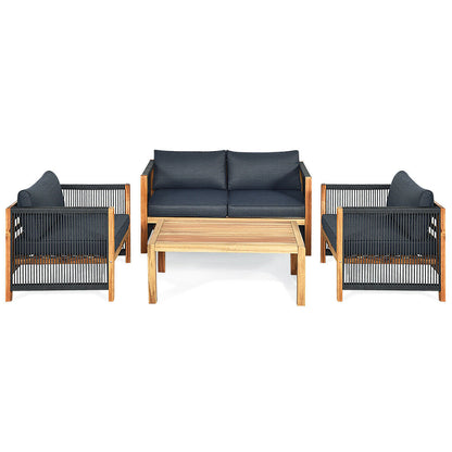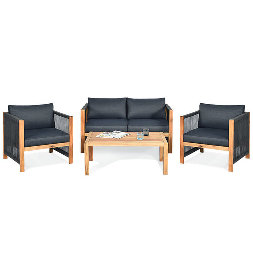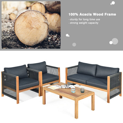 4-Piece Acacia Wood Outdoor Patio Furniture Set, Gray