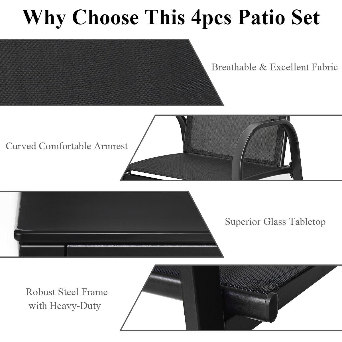 4 Pieces Patio Furniture Set with Glass Top Coffee Table, Black