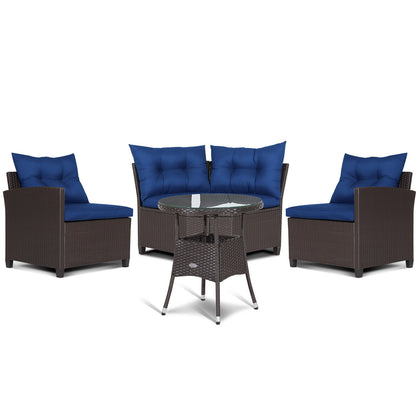 4 Pieces Patio Rattan Furniture Set Cushioned Sofa Glass Table, Navy