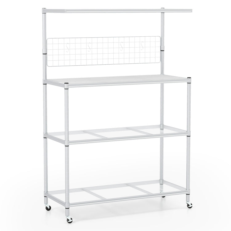 4-Tier Bakers Rack on Wheels with Adjustable Shelves, Silver