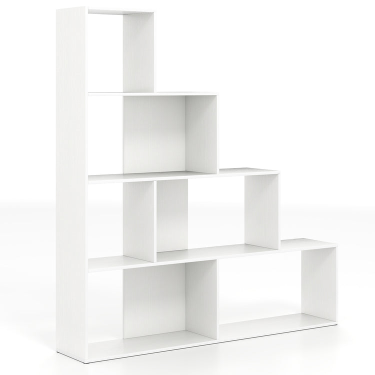 - Step-shaped bookcase with geometric design enhances overall aesthetic appeal.