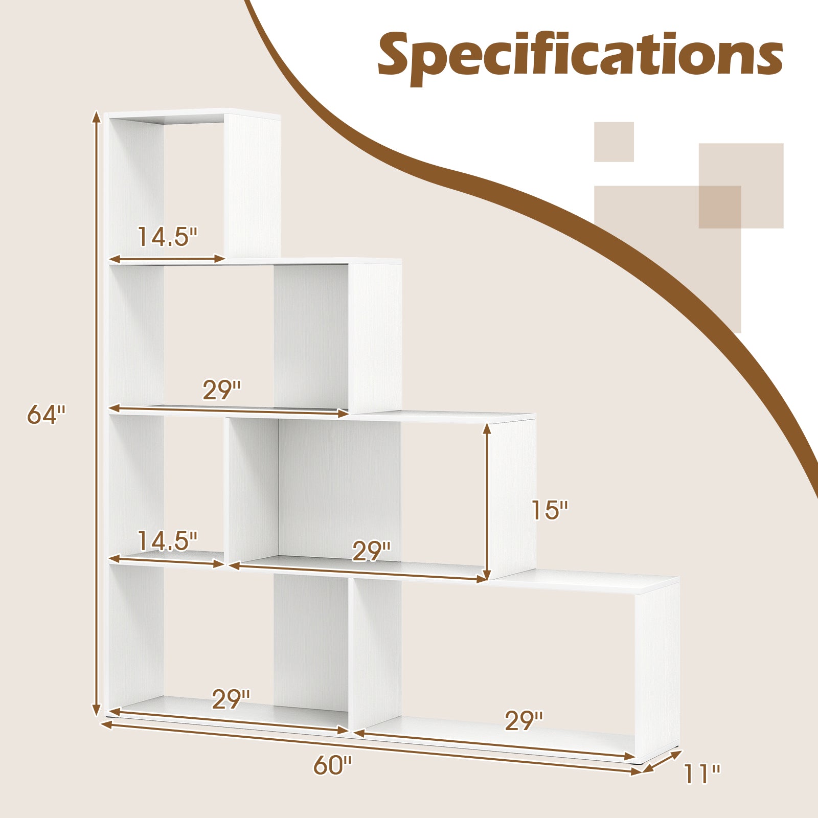 4-Tier Bookshelf, 6 Cube Display Rack, White