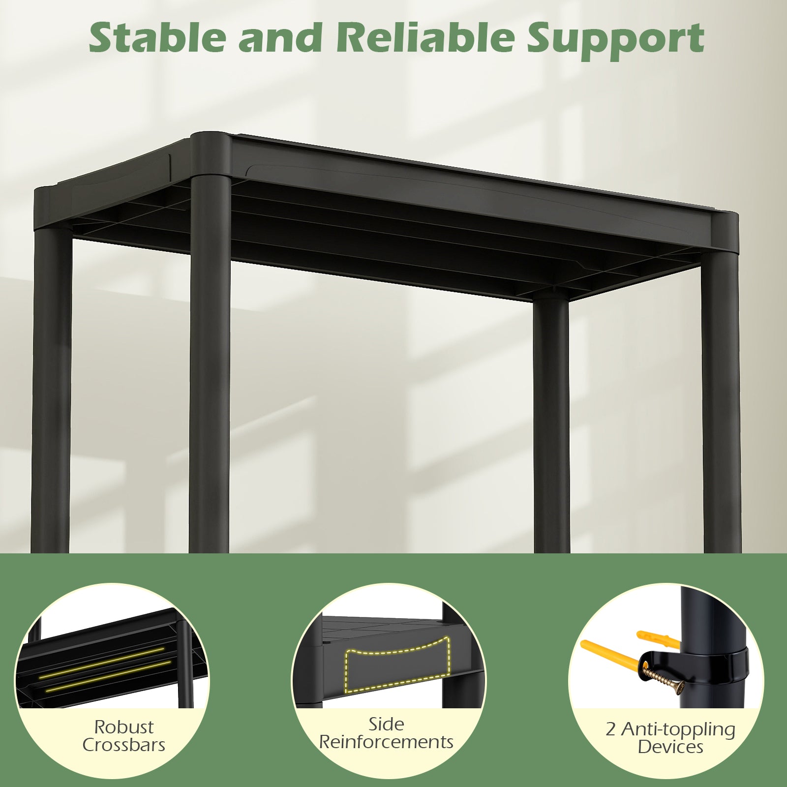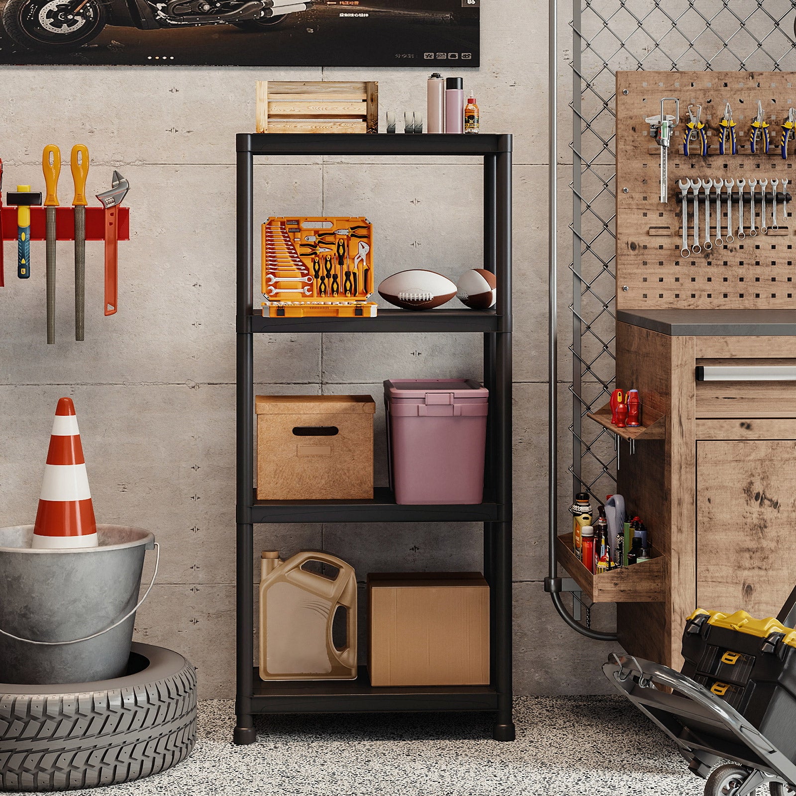 4-Tier Heavy-Duty Plastic Storage Shelves, Black