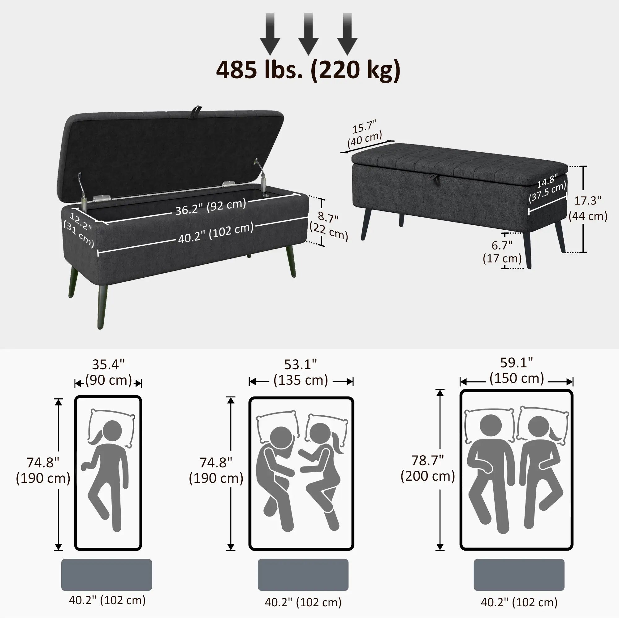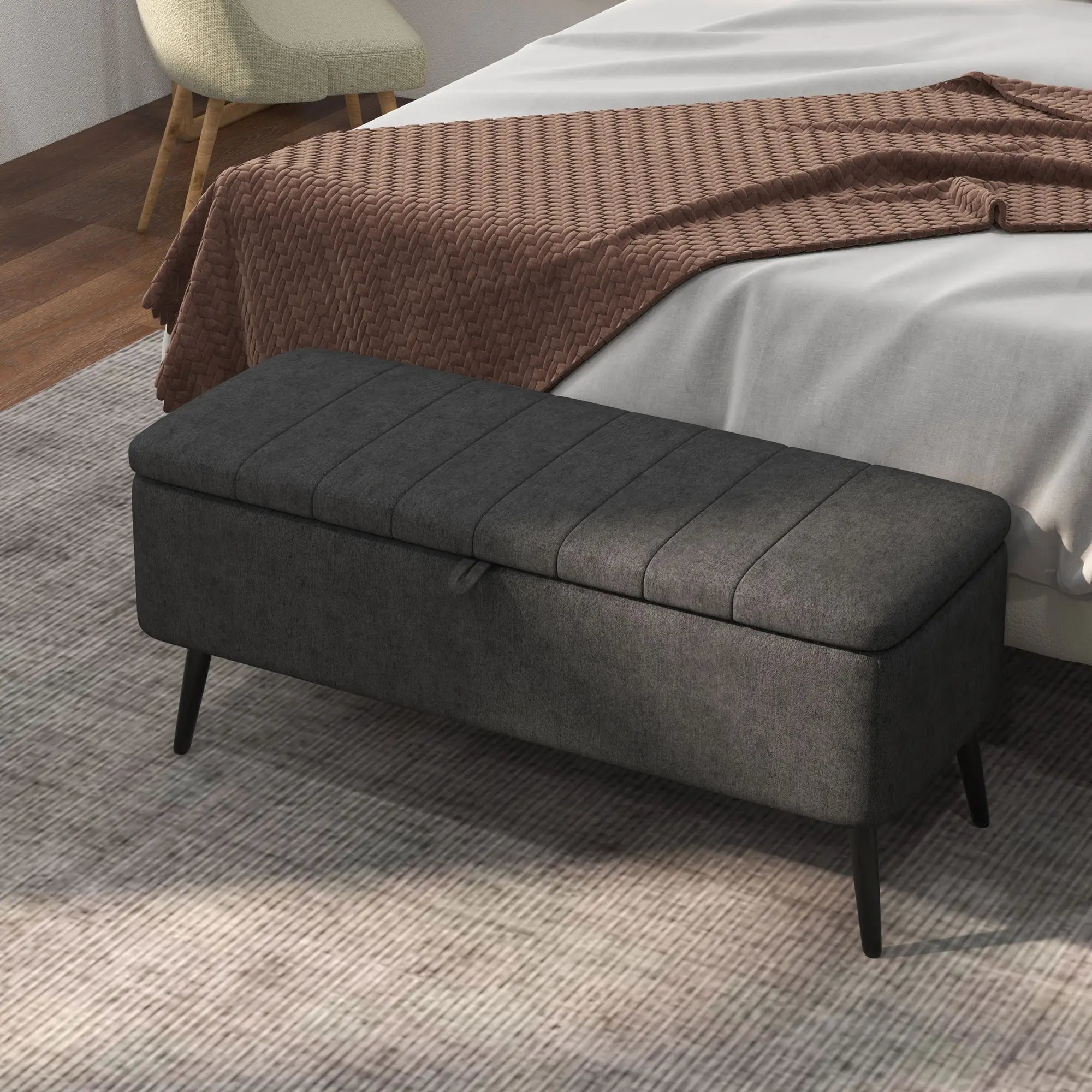 40" Ottoman with Storage, Linen Upholstered Bench, Dark Grey