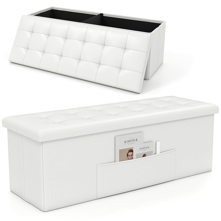 Abundant Storage with Middle Divider: Featuring 160 L of storage capacity, this foldable storage bench has a generous chest to organize toys, blankets, pillows and more. The middle divider enables a separate storage of different items, saving you the trouble of rummaging through the chest blindly.