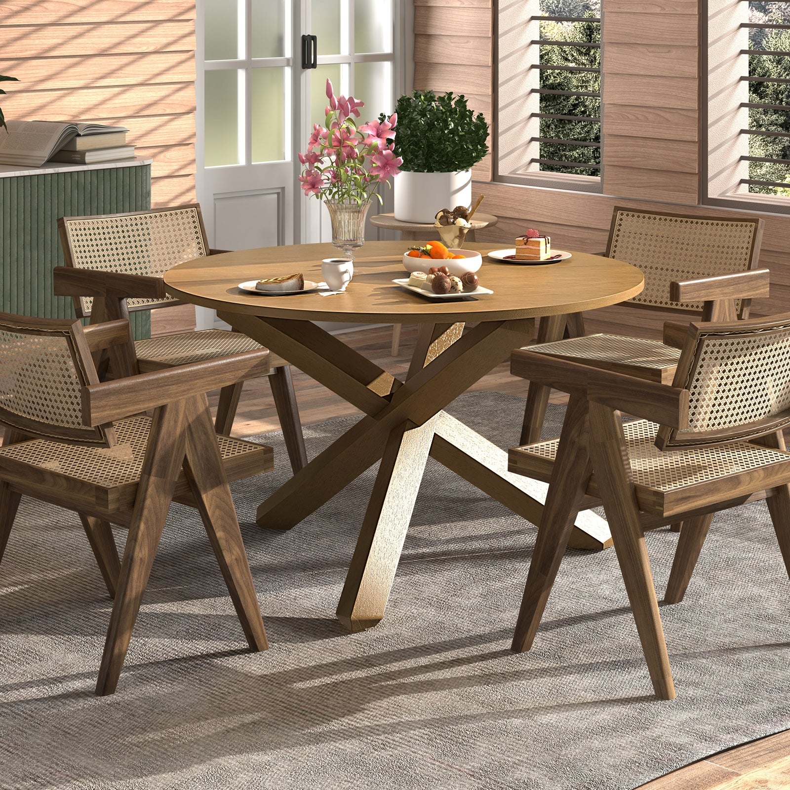 47 Inches Round Dining Table with Solid Acacia Wood Legs for 4-6 Person, Natural