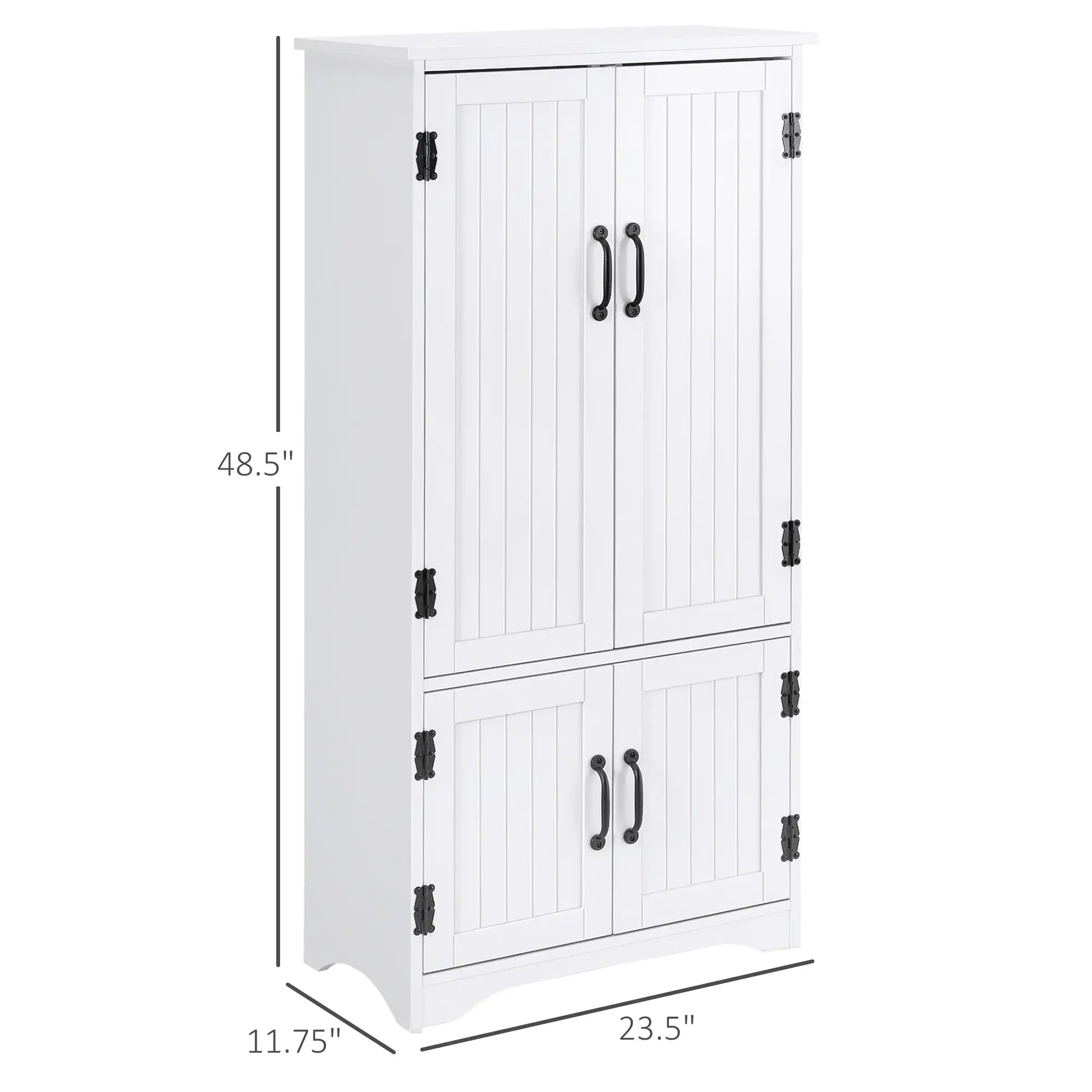 48" 4-Door Storage Cabinet, Adjustable Shelves, White