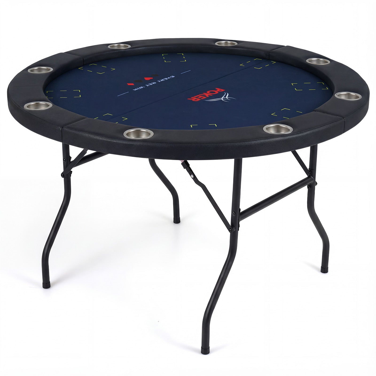 48 Inch Foldable Poker Table with 8 Cup Holders and Padded Edges, Blue