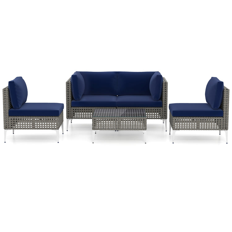 5 Piece Outdoor Furniture Set Patio Rattan Chairs with Tempered Glass Coffee Table, Navy