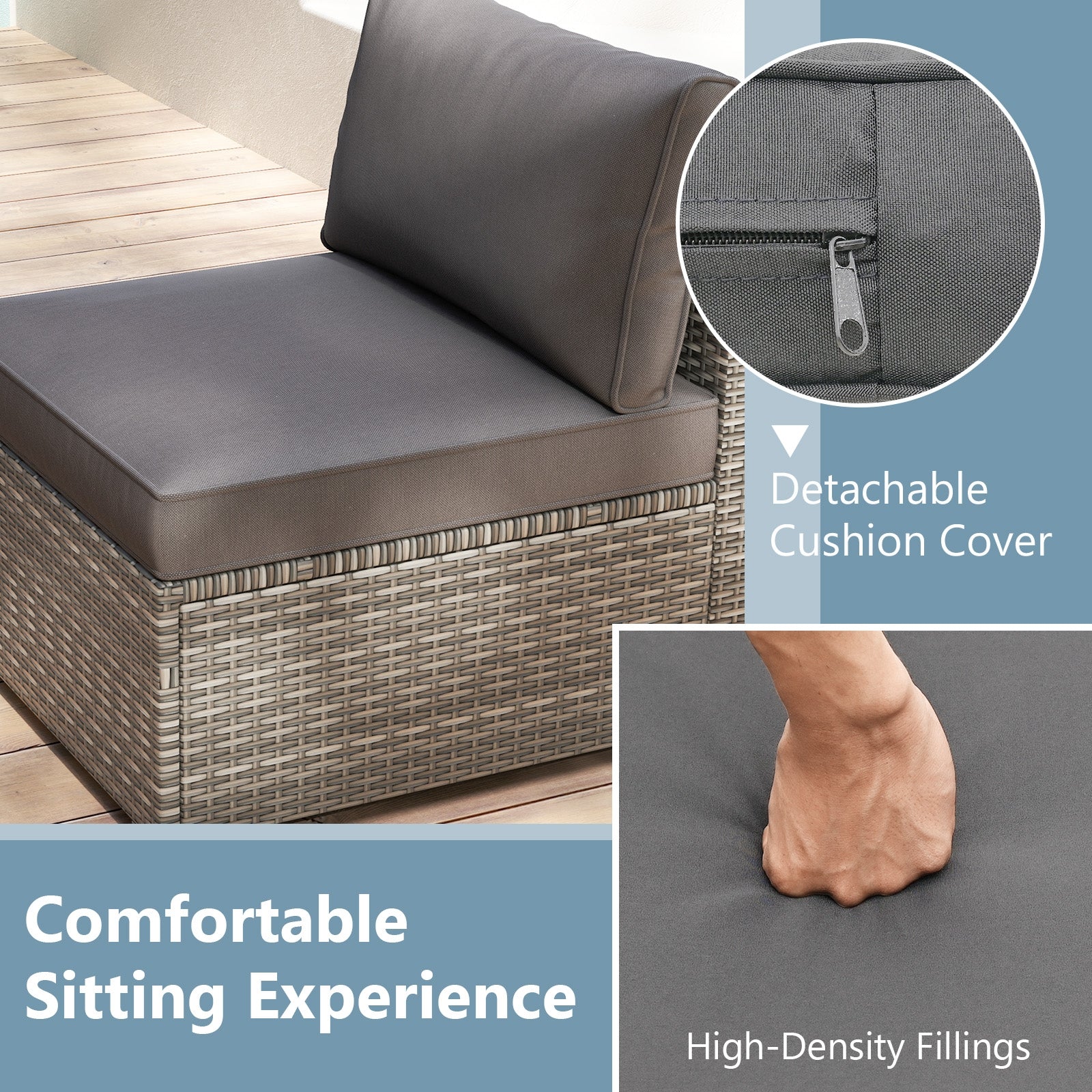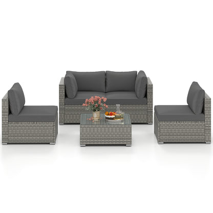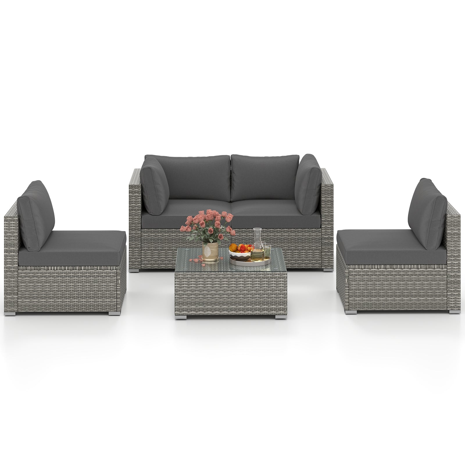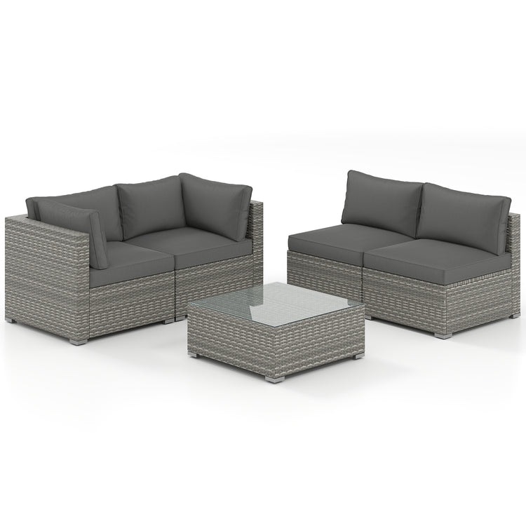 5-Piece Patio Sectional Sofa, Glass Coffee Table, Gray