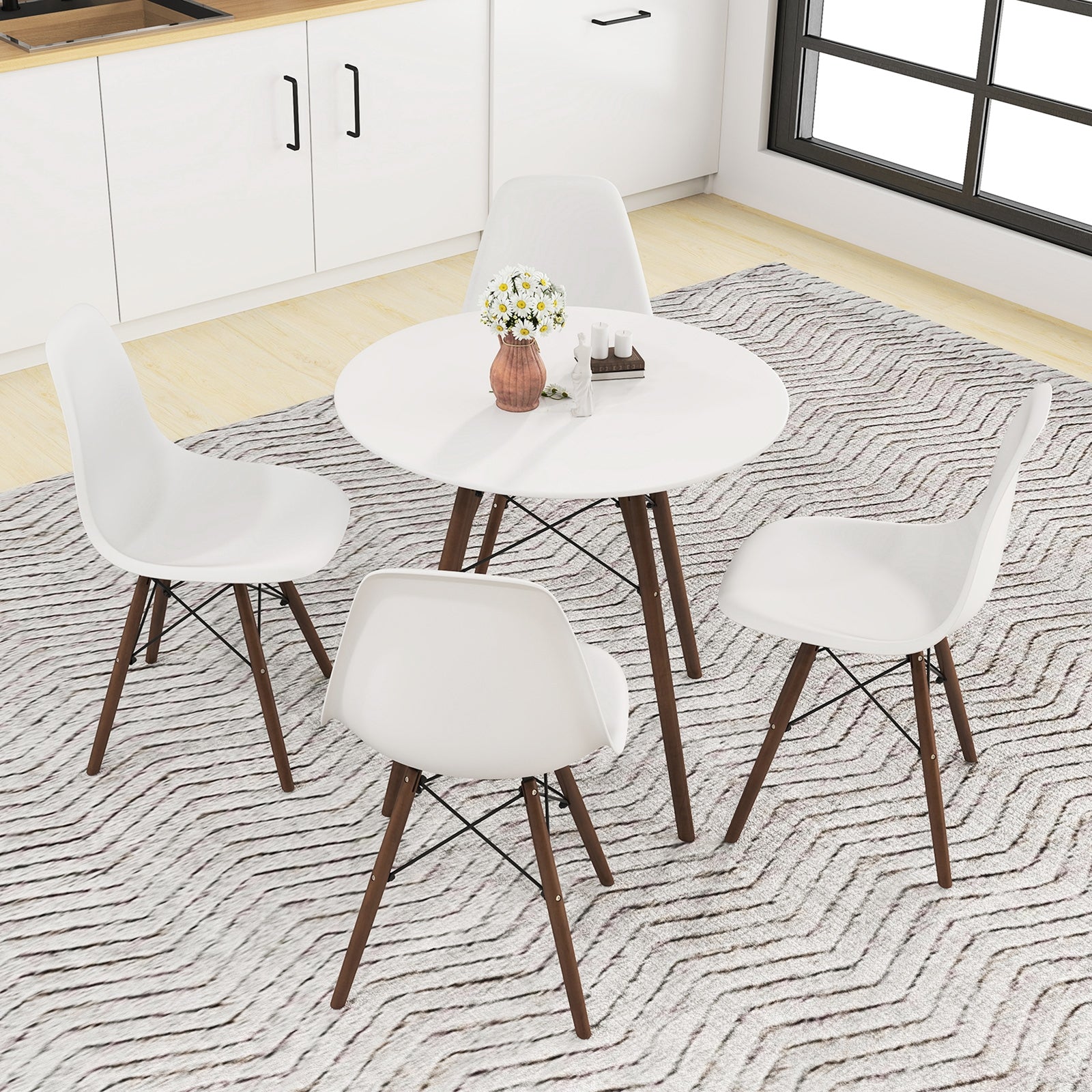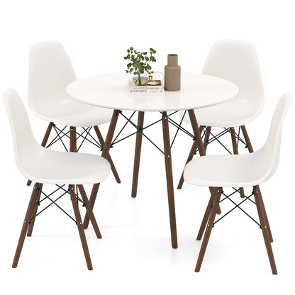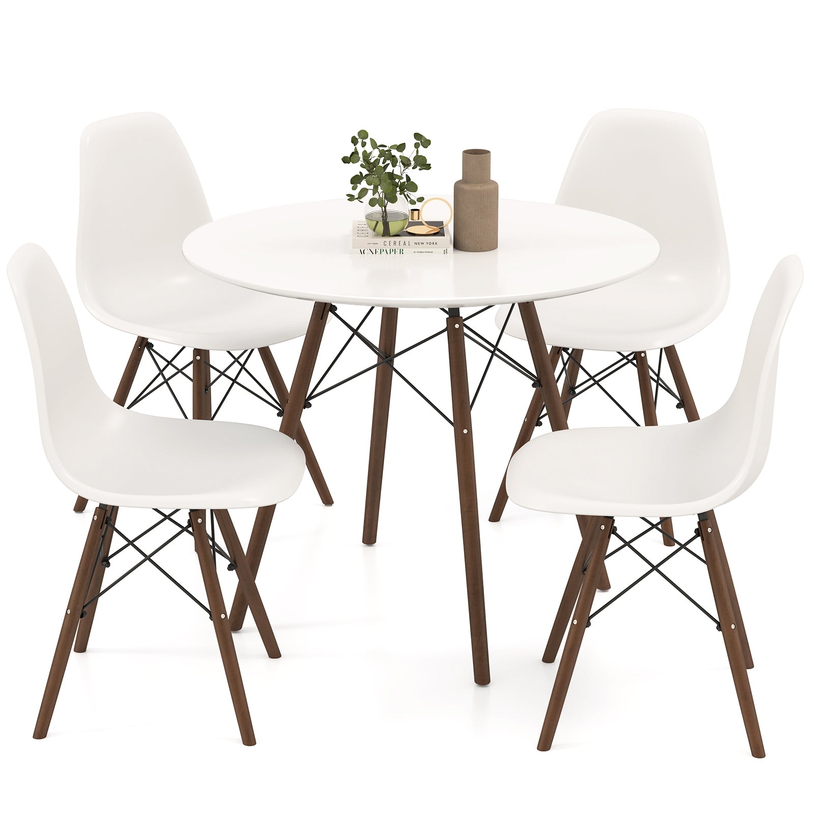5-Piece Dining Table Set: The dining table set is designed with a round table and 4 chairs, providing sufficient space to enjoy delicious dining or leisurely afternoon teas with your family or friends. With its simple and elegant appearance, the table set conforms to modern aesthetics while decorating your home.