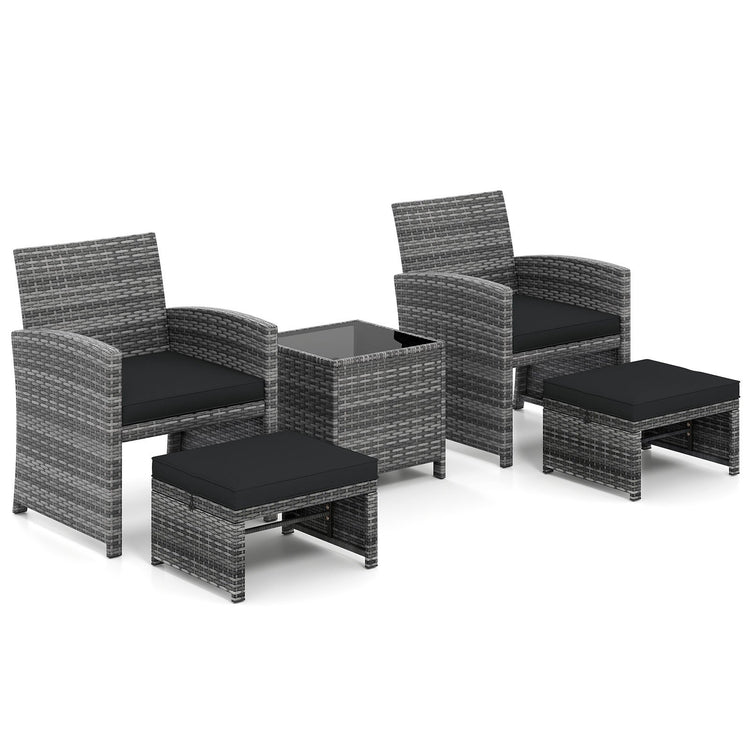 5 Pieces Patio Furniture Set PE Wicker Outdoor Lounge Chairs with 2 Ottomans, Black