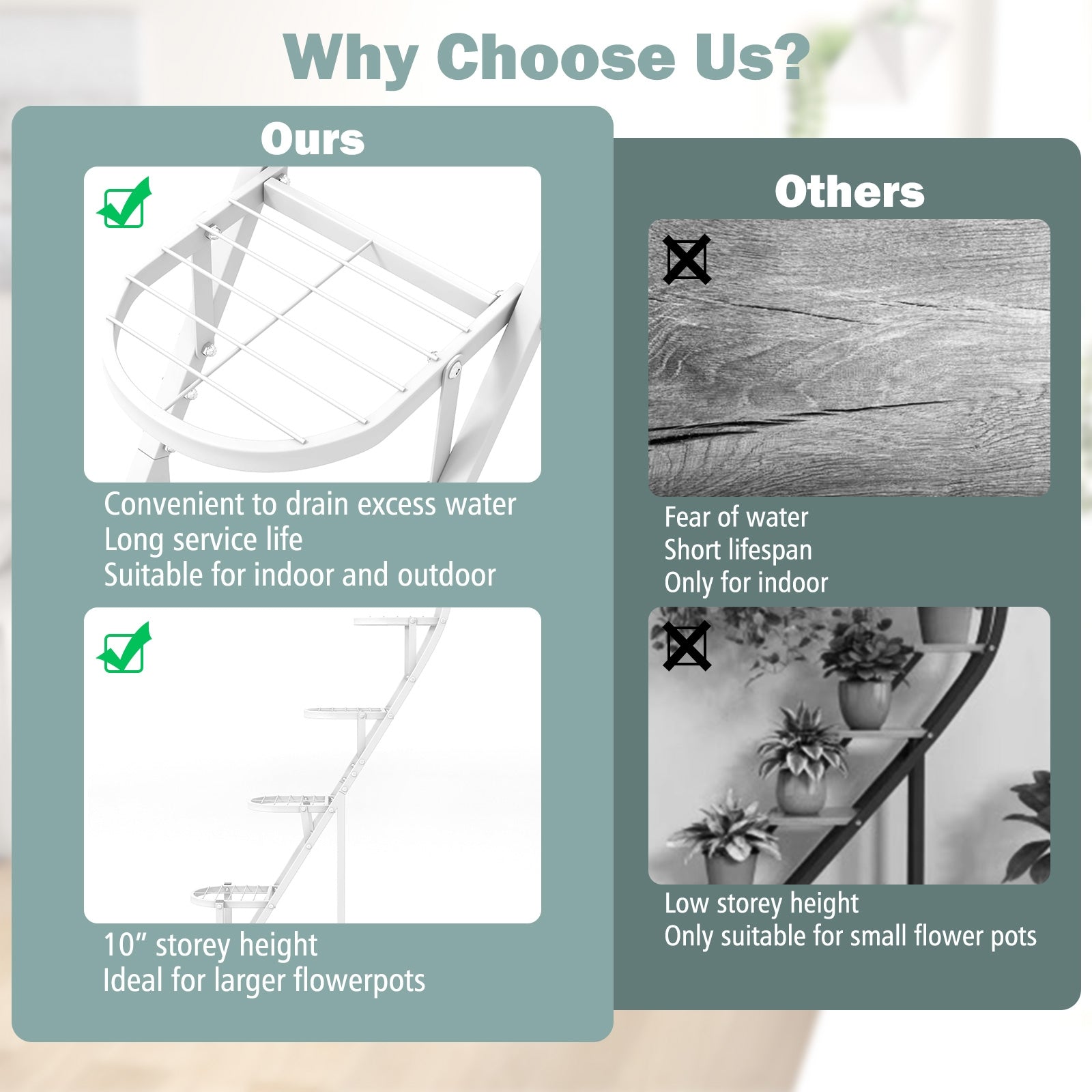 - 5-tier display shelves provide ample space for flower pots and larger plants.