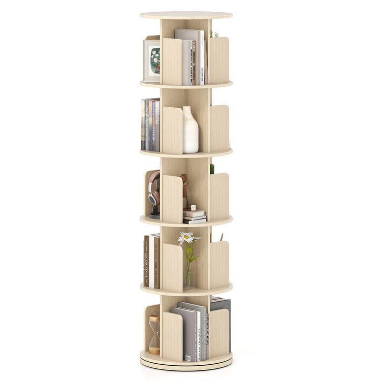 5-Tier Rotating Bookshelf 360° Display Rack with Dividers and Anti-falling Baffles, Natural