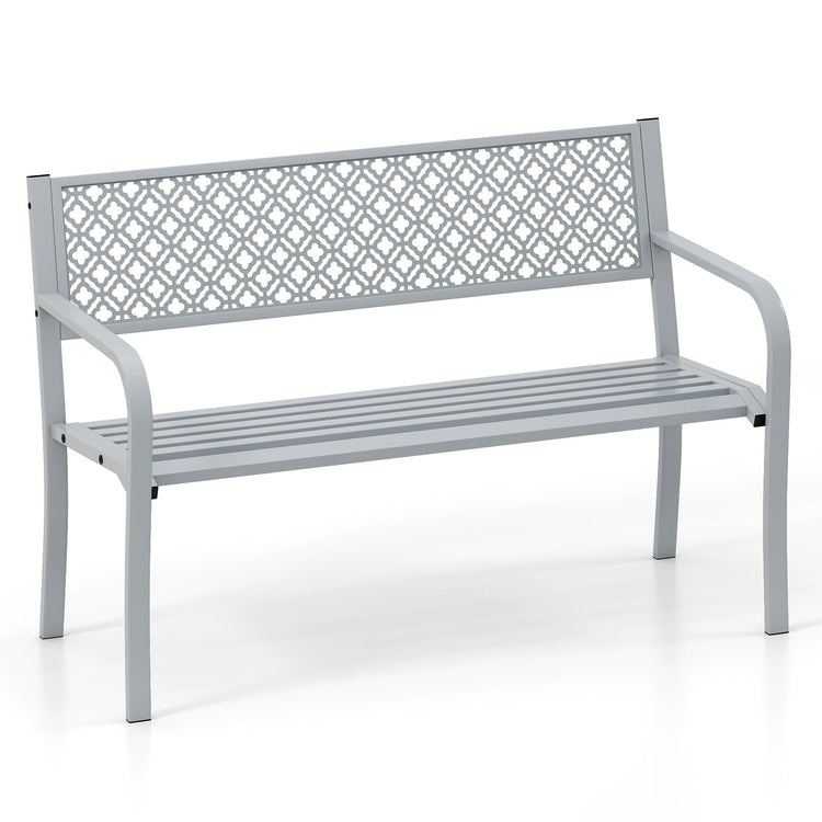 50 Inches Outdoor Garden Bench with Geometric Lattice Backrest and Slatted Seat, Gray