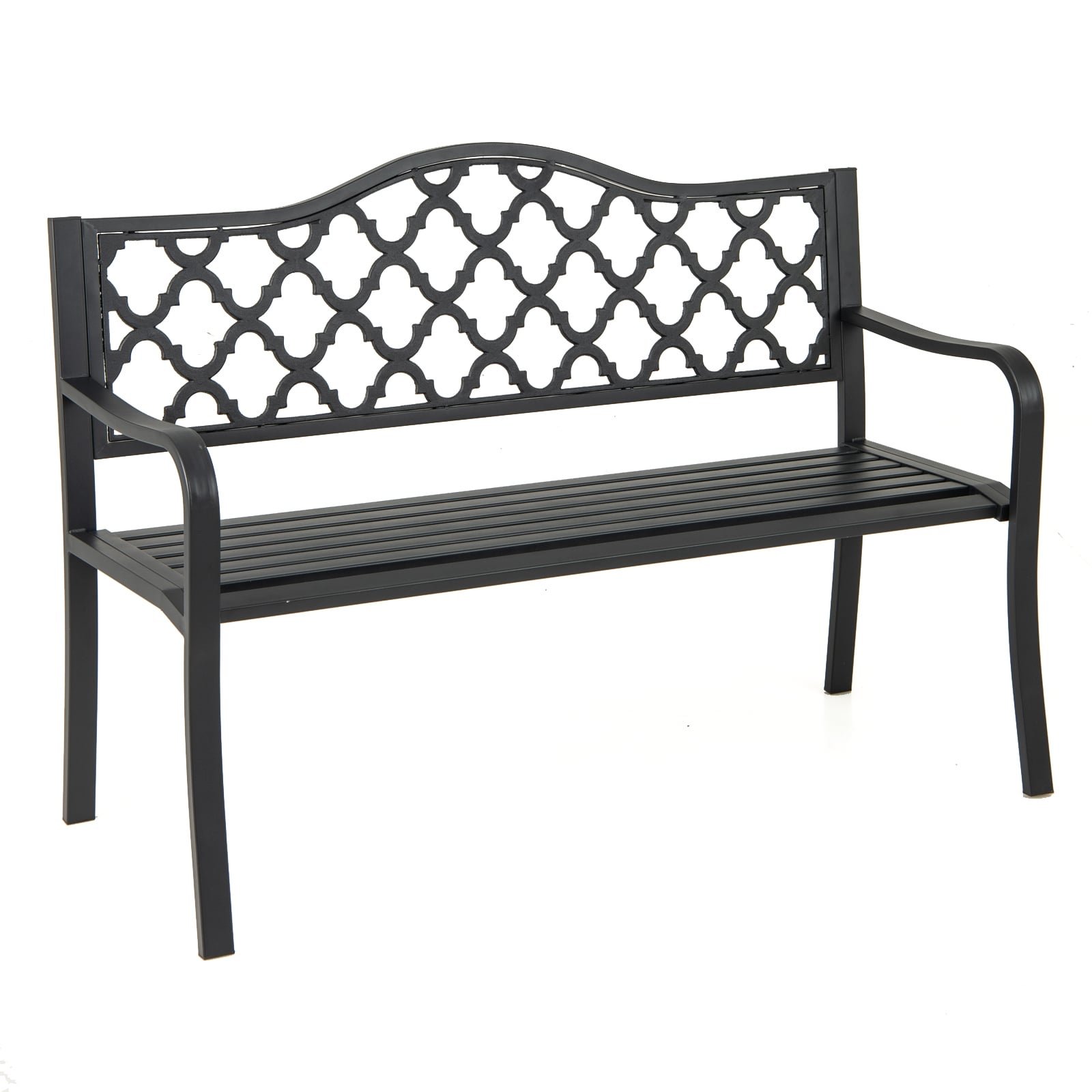 50.5 Inch Patio Bench, Curved Armrests, Seats 2-3, Black