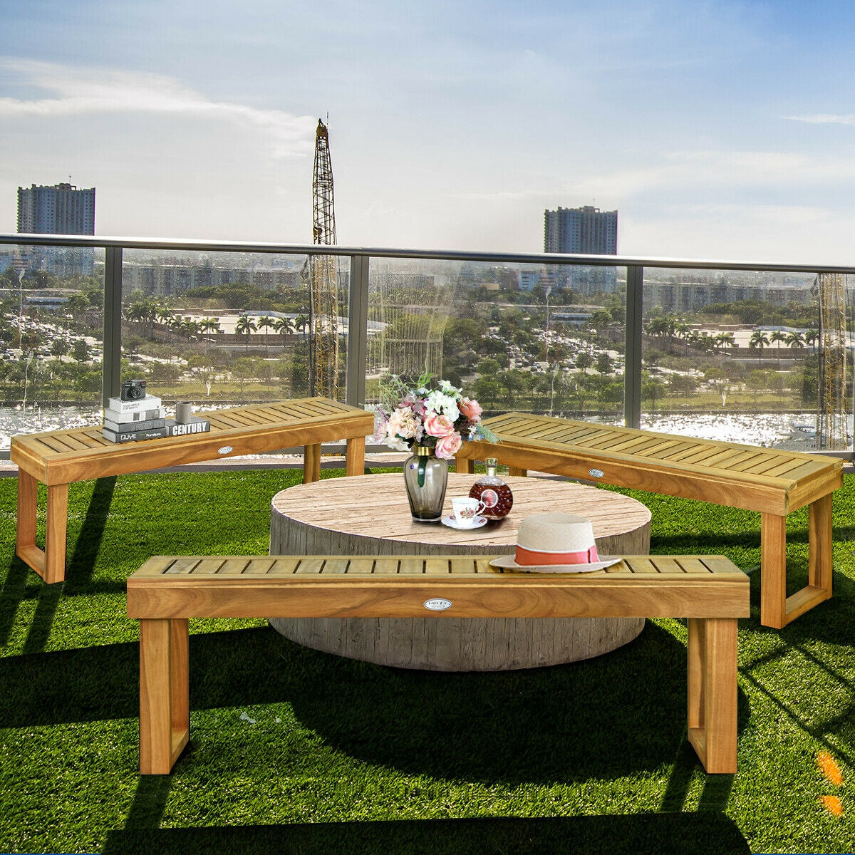 • Acacia wood bench parts.