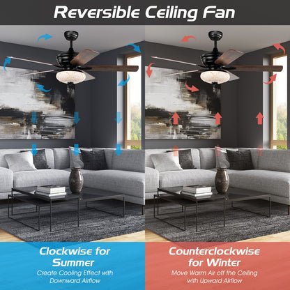 52 Inch Ceiling Fan, 3 Wind Speeds, 5 Reversible Blades, Black