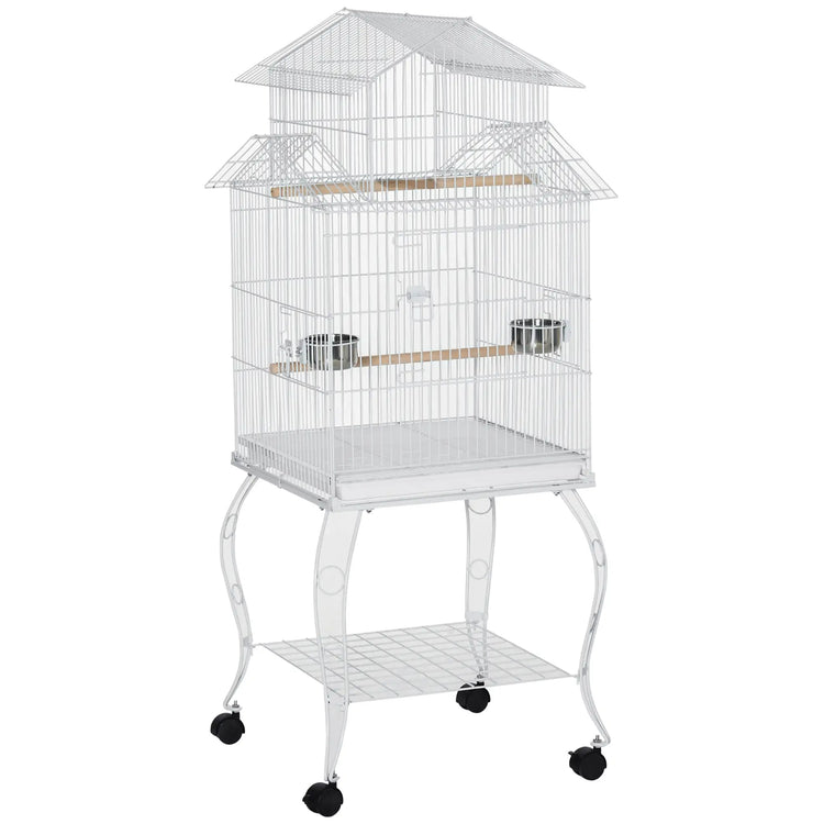 53.9'' Large Rolling Bird Cage with Stand, Shelf, Perch, White