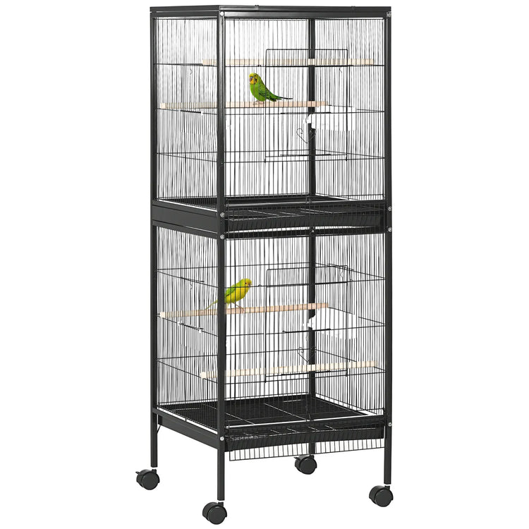 55.1" 2 In 1 Bird Cage Aviary, Parakeet House, Black
