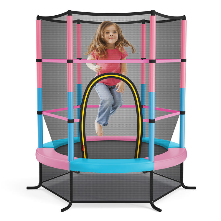 55 Inch Kids Recreational Trampoline Bouncing Jumping Mat with Enclosure Net, Pink