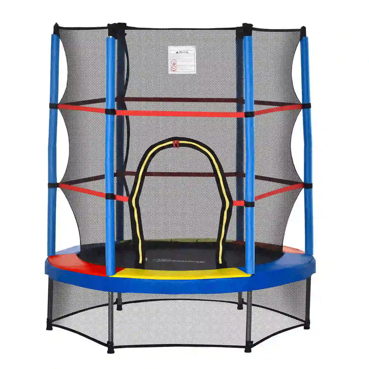 55" Kids Trampoline with Enclosure Net, Indoor/Outdoor, Multi-Coloured