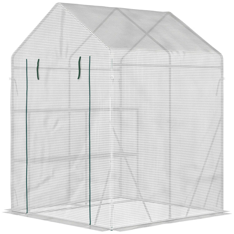 56 x 56 Walk-In Greenhouse, Portable Gardening Plant House, 2-Tier Shelf, Green