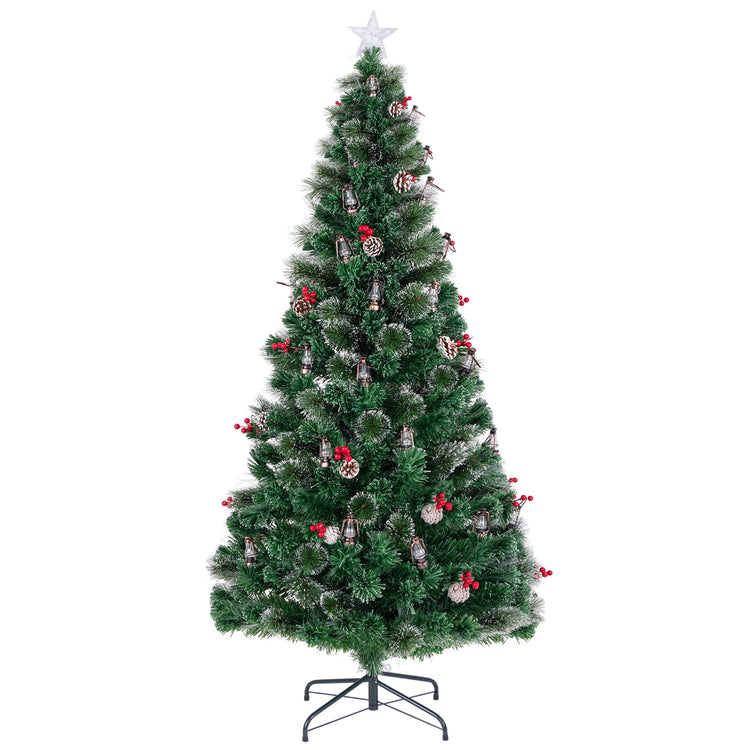 5/6/7 Feet Artificial Christmas Tree with Red Berries and Kerosene Lamps-7 ft, Green