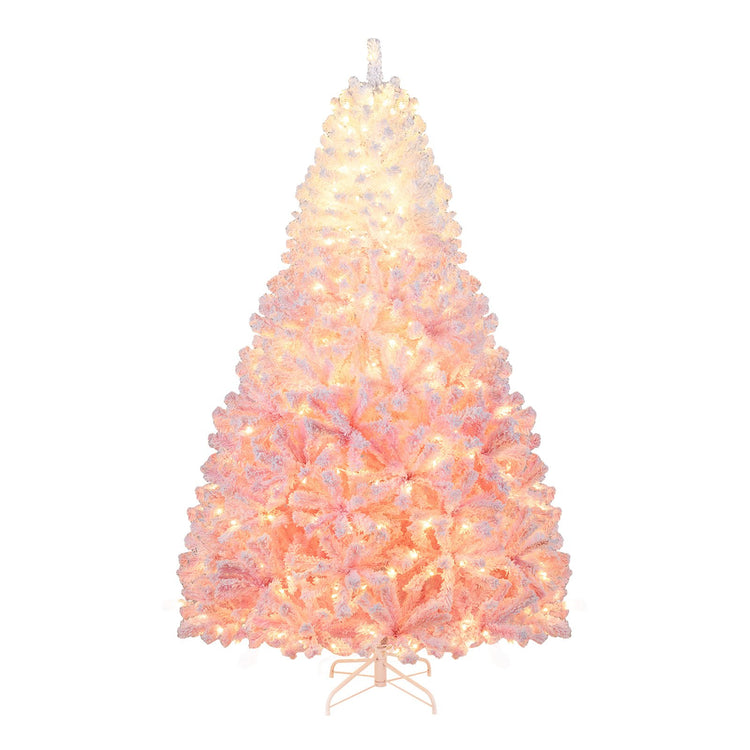 Striking Pink Gradient Design: This 5/6/7/8 ft snow-flocked artificial Christmas tree features a stunning gradient color - white to pink, bringing a refreshing twist and elegant touch to the festive season. It stands out with its stylish and eye-catching hues.