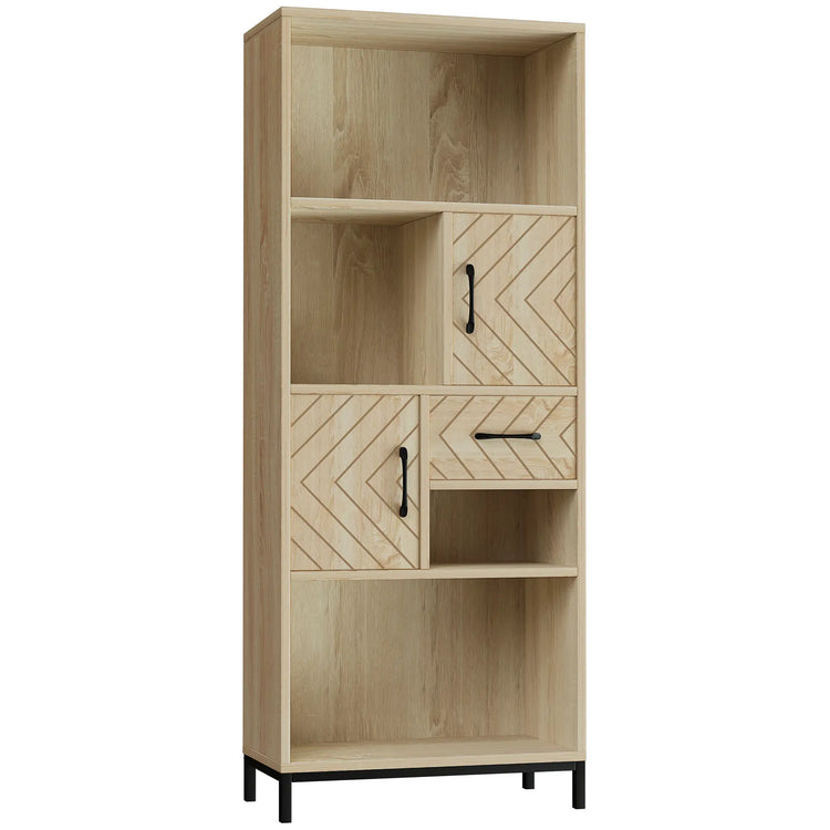 59" Bookcase, Storage Bookshelf with Cabinets, Drawer, Open Compartments, Nature Wood