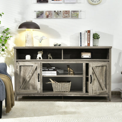 59 Inch TV Stand Media Center Console Cabinet with Barn Door for TV's 65 Inch, Natural