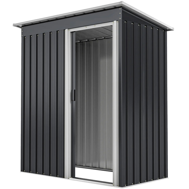 5x3 FT Outdoor Storage Shed, Sliding Door, Sloped Roof, Steel Frame, Black