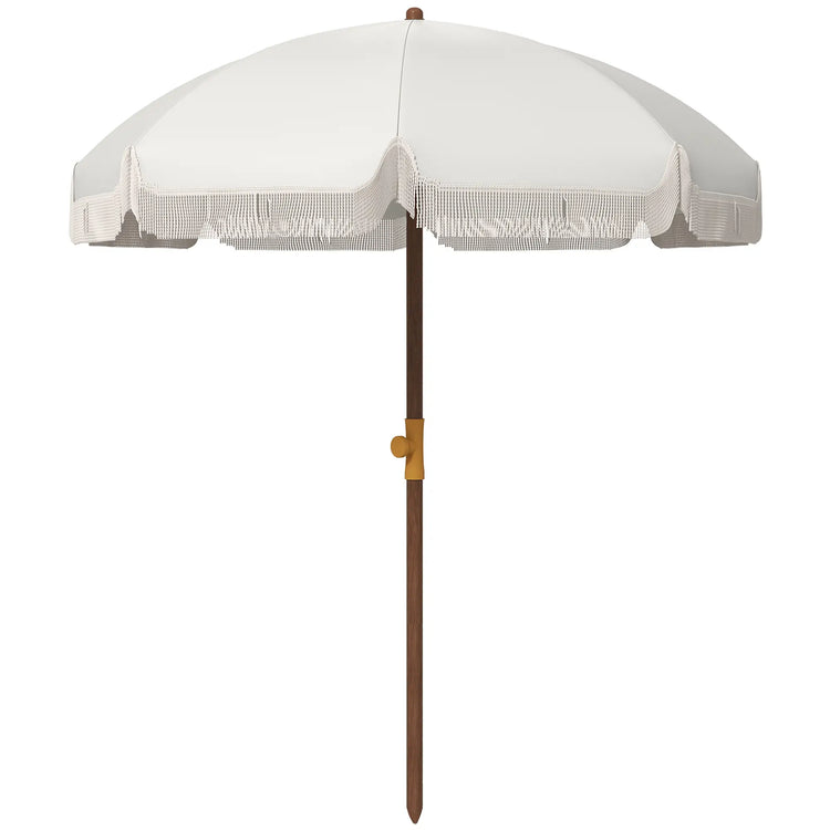6.2' Travel Beach Umbrella, Vent, Ruffles, Carry Bag, Cream White