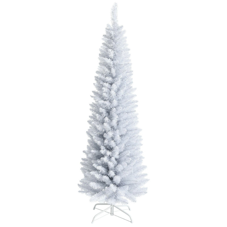 6 Feet Unlit Artificial Slim Pencil Christmas Tree with Metal Stand, White