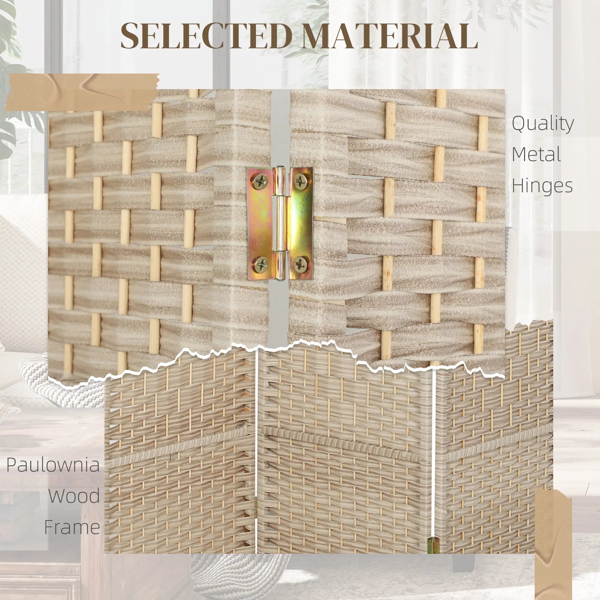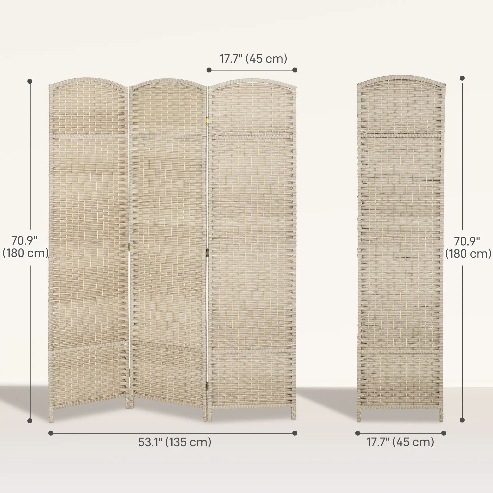 - Foldable 3-panel design with 6 metal hinges for flexible space arrangement