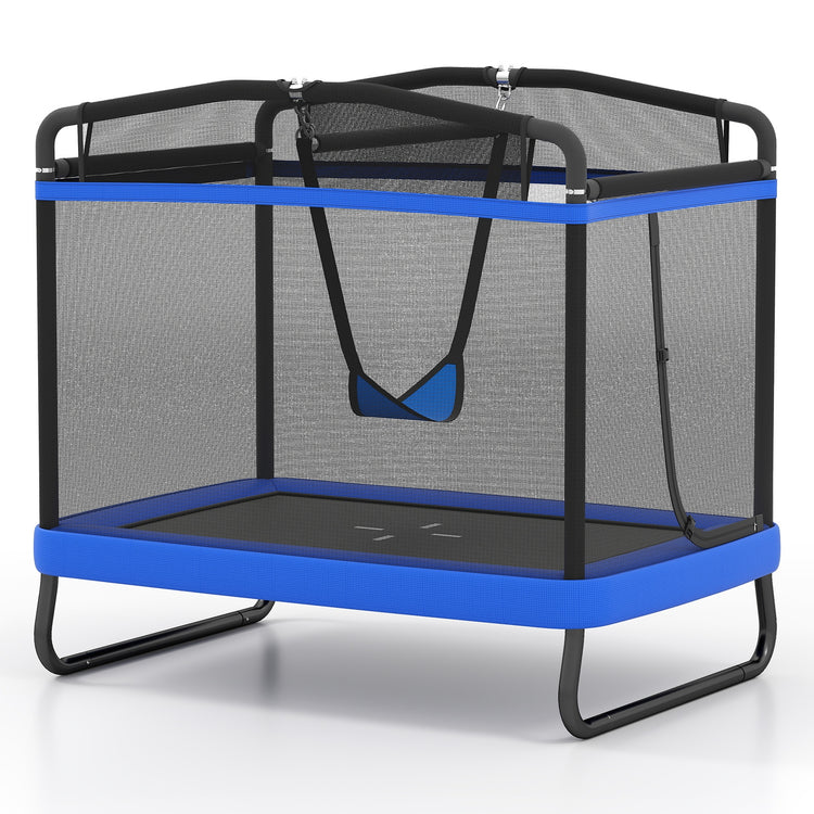 6 FT Kids Trampoline with Swing and Horizontal Bar Small Rectangle Trampoline, Blue