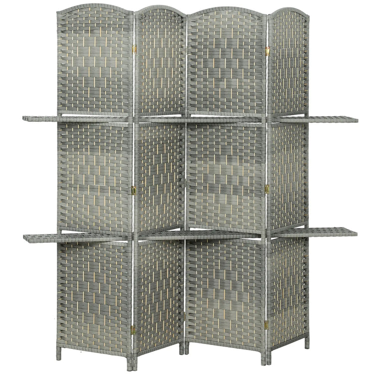 6 FT Privacy Screen, 4 Panel Room Divider With Shelves, Grey