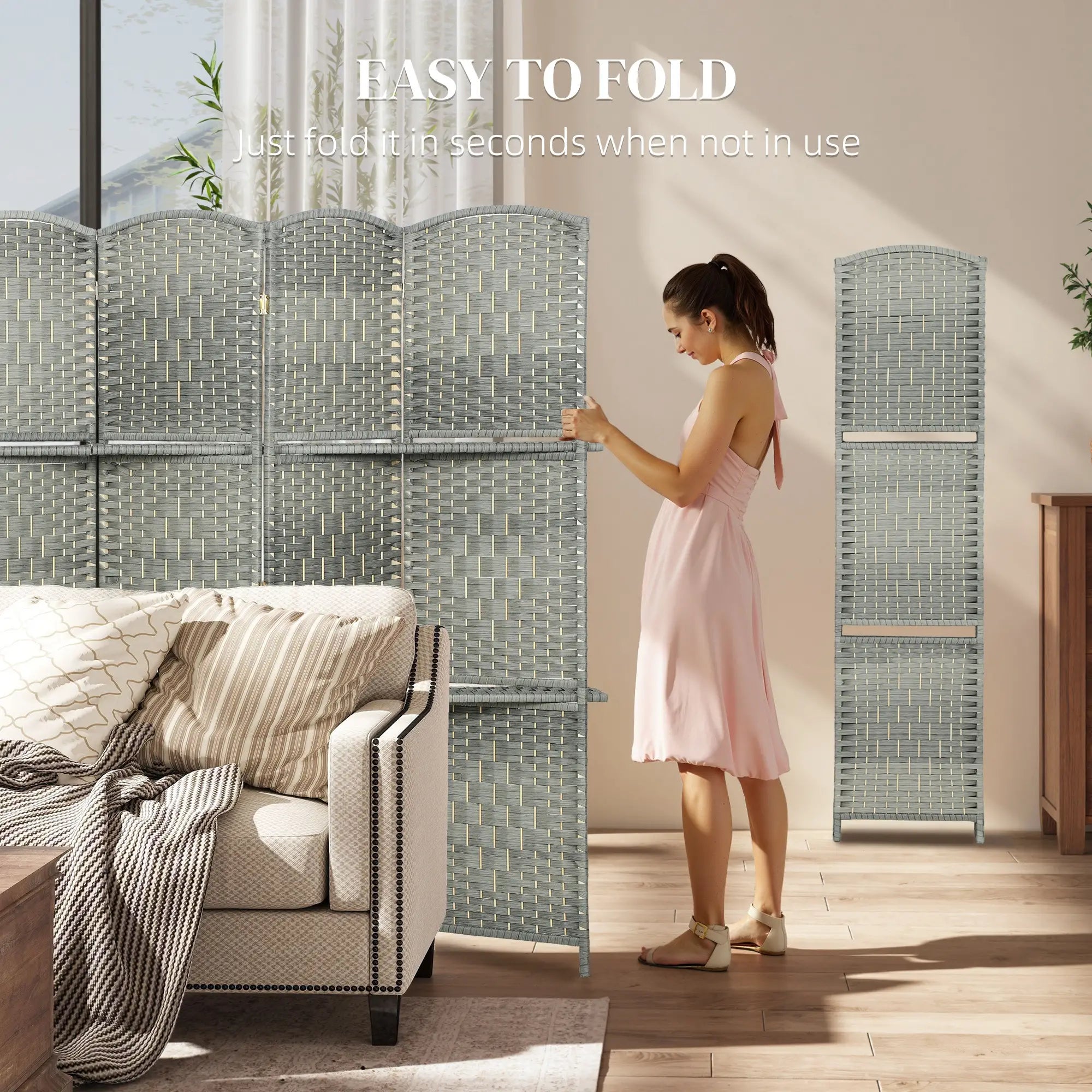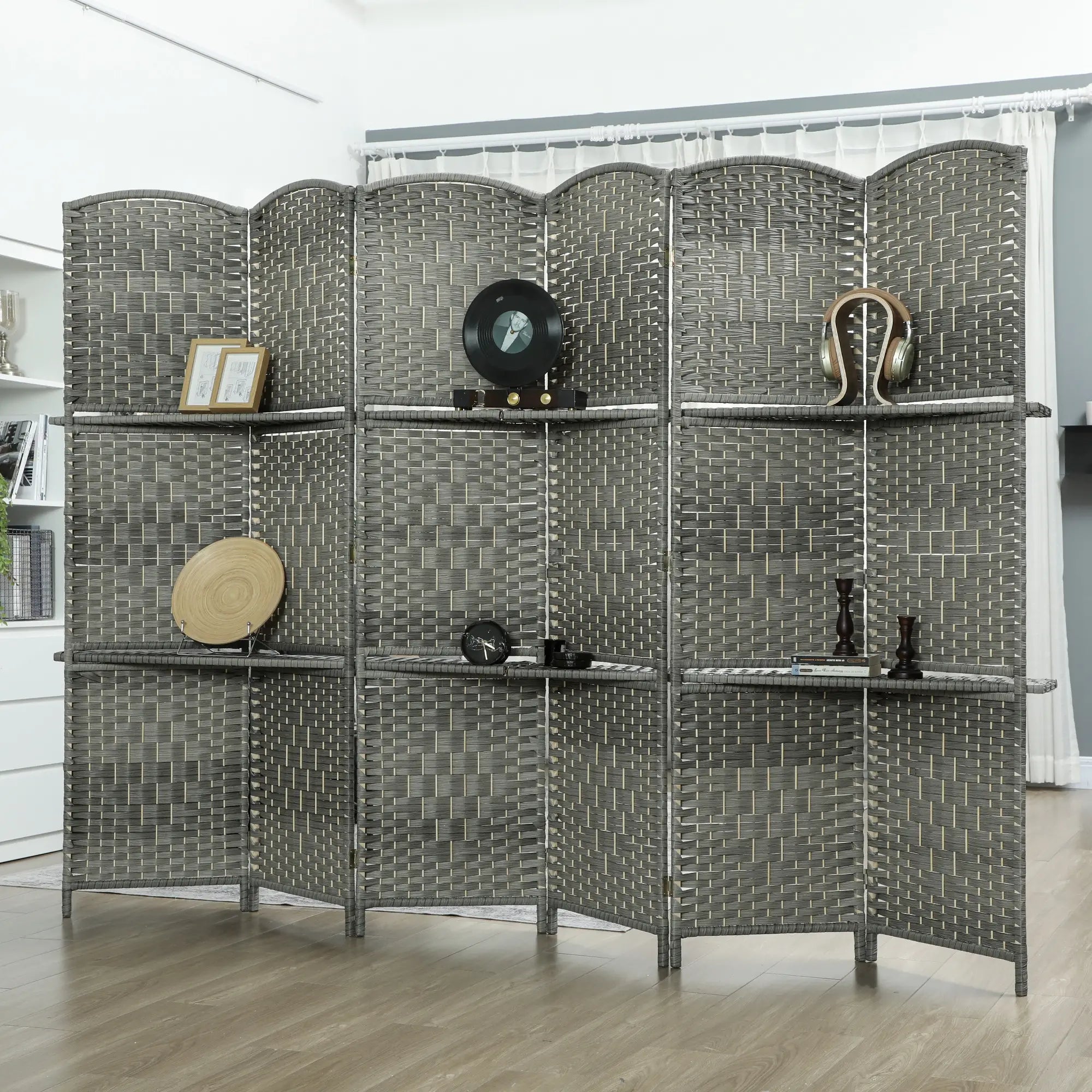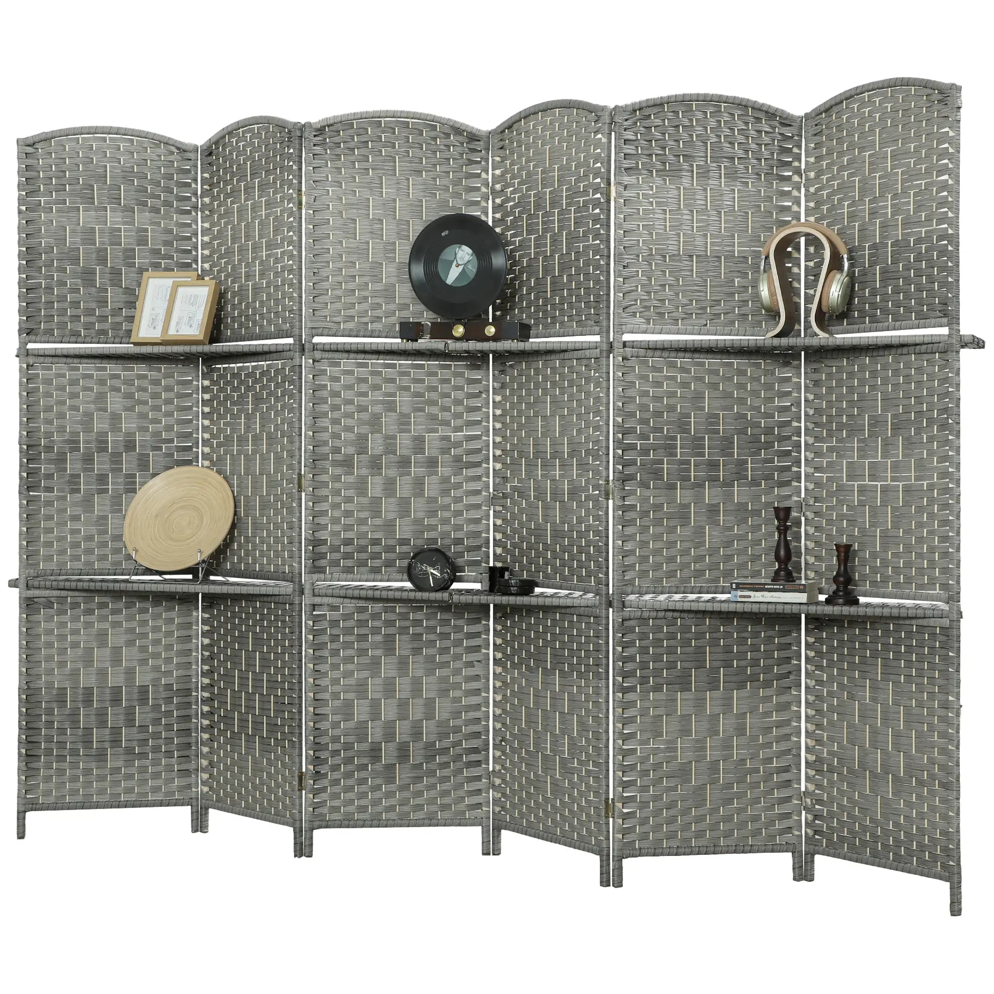 6 FT Privacy Screen, 6 Panel Room Divider With Shelves, Grey