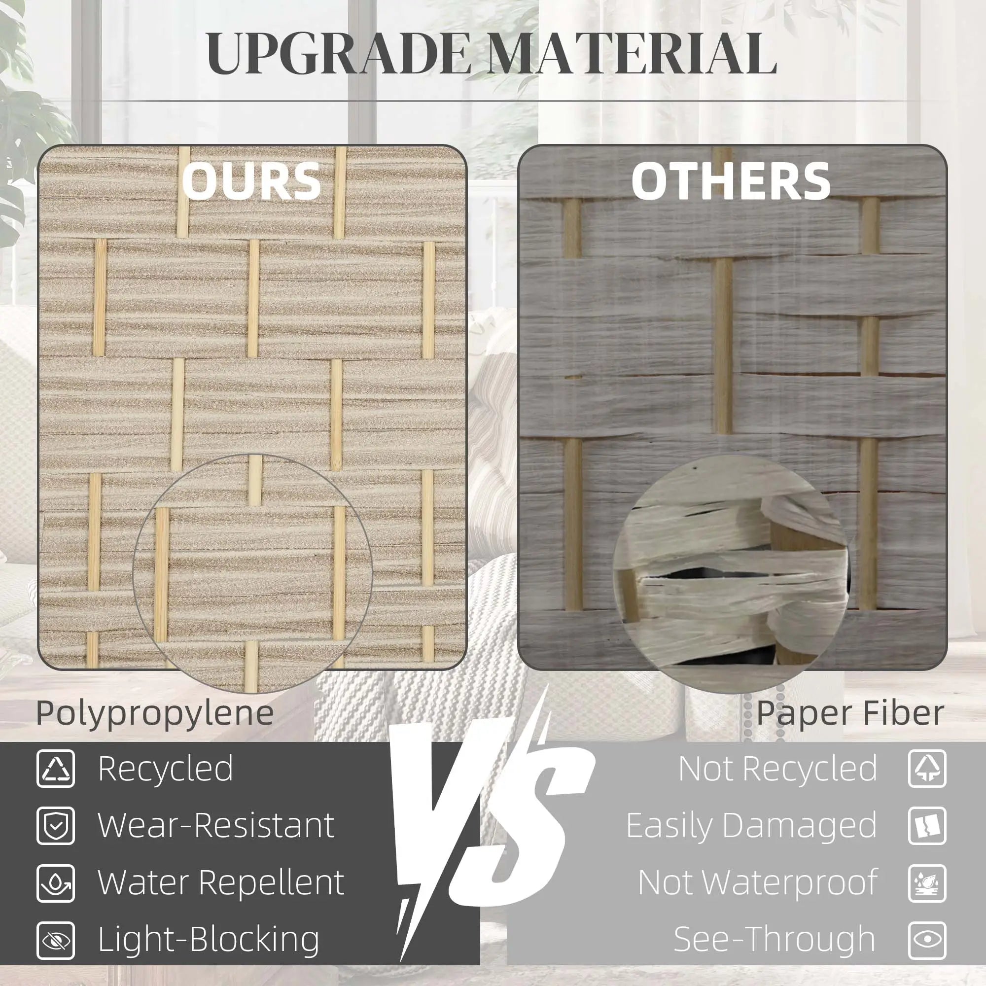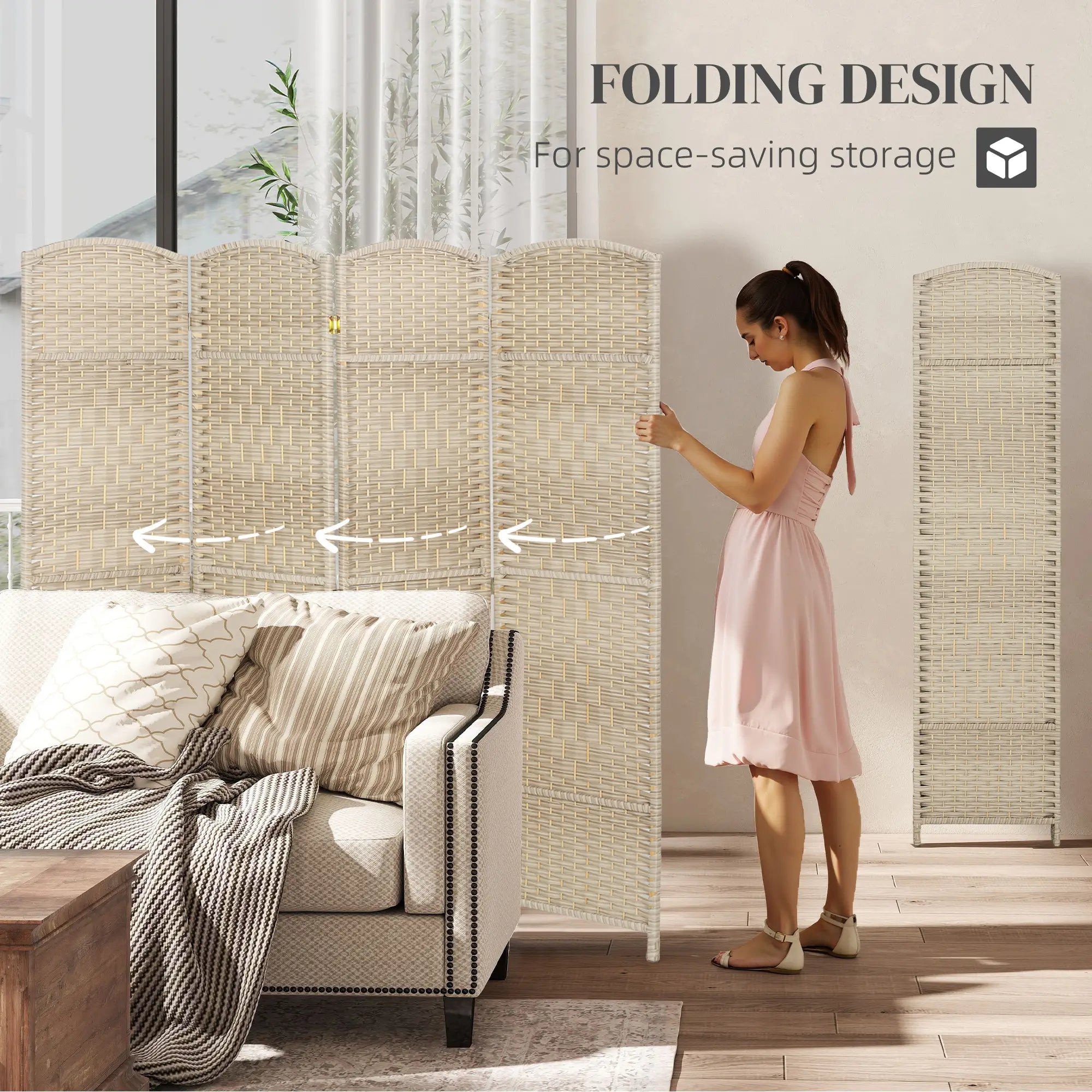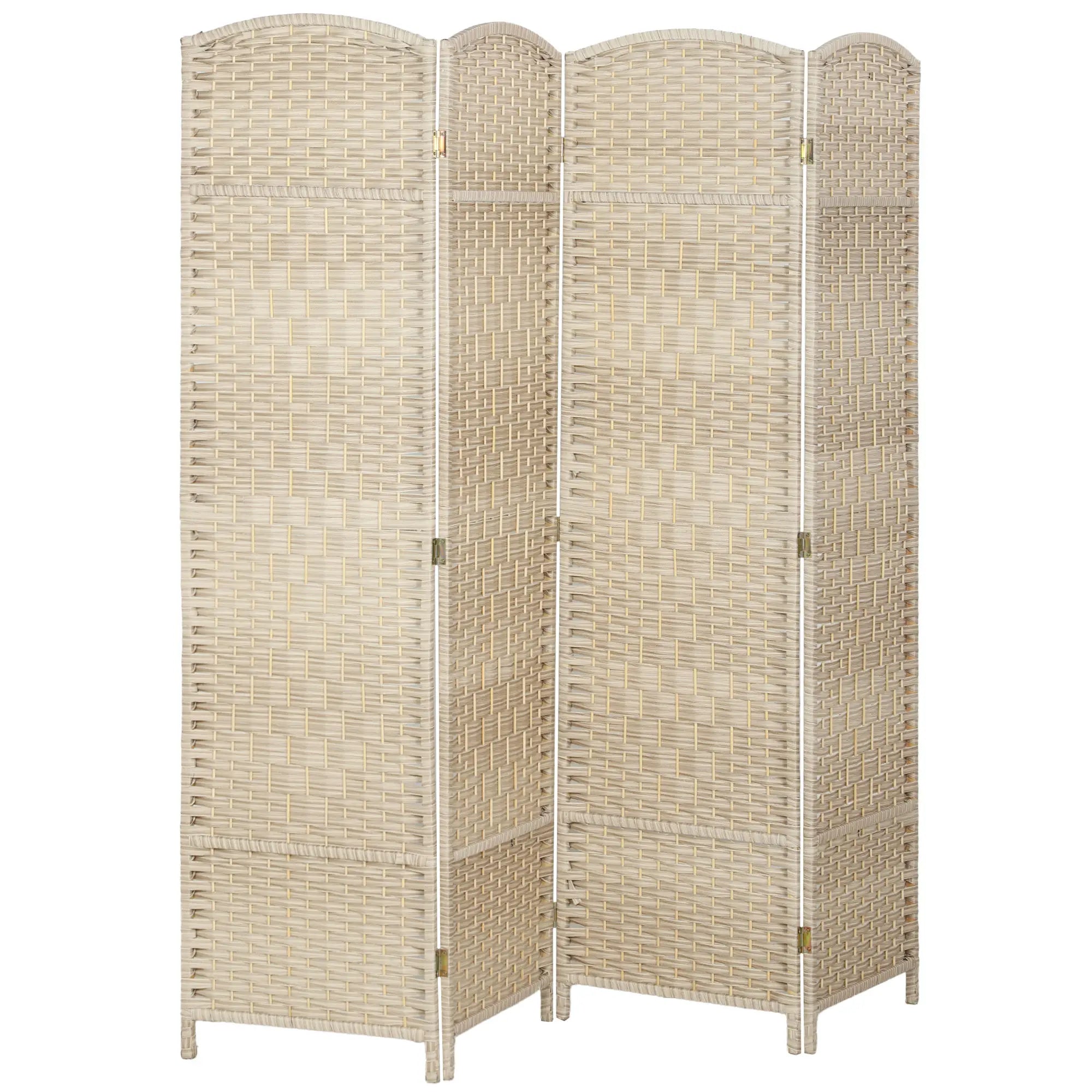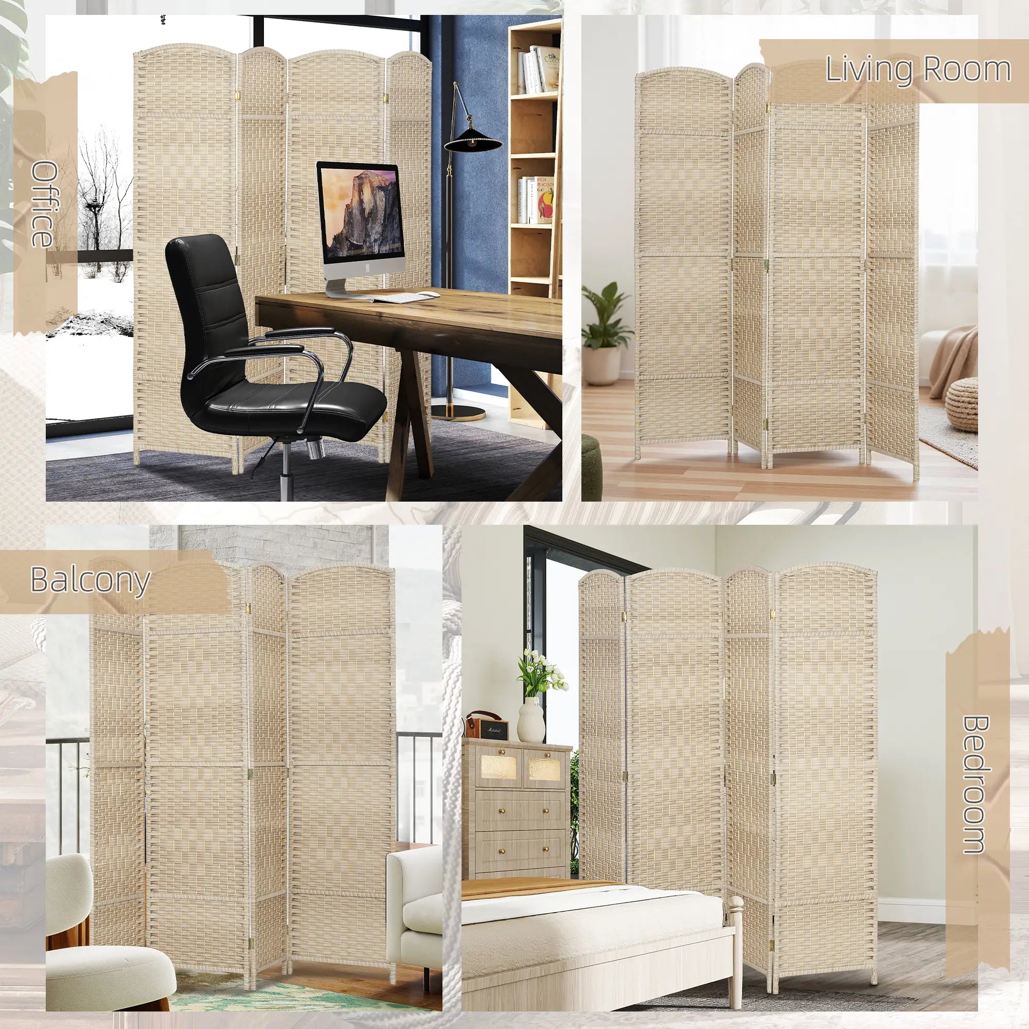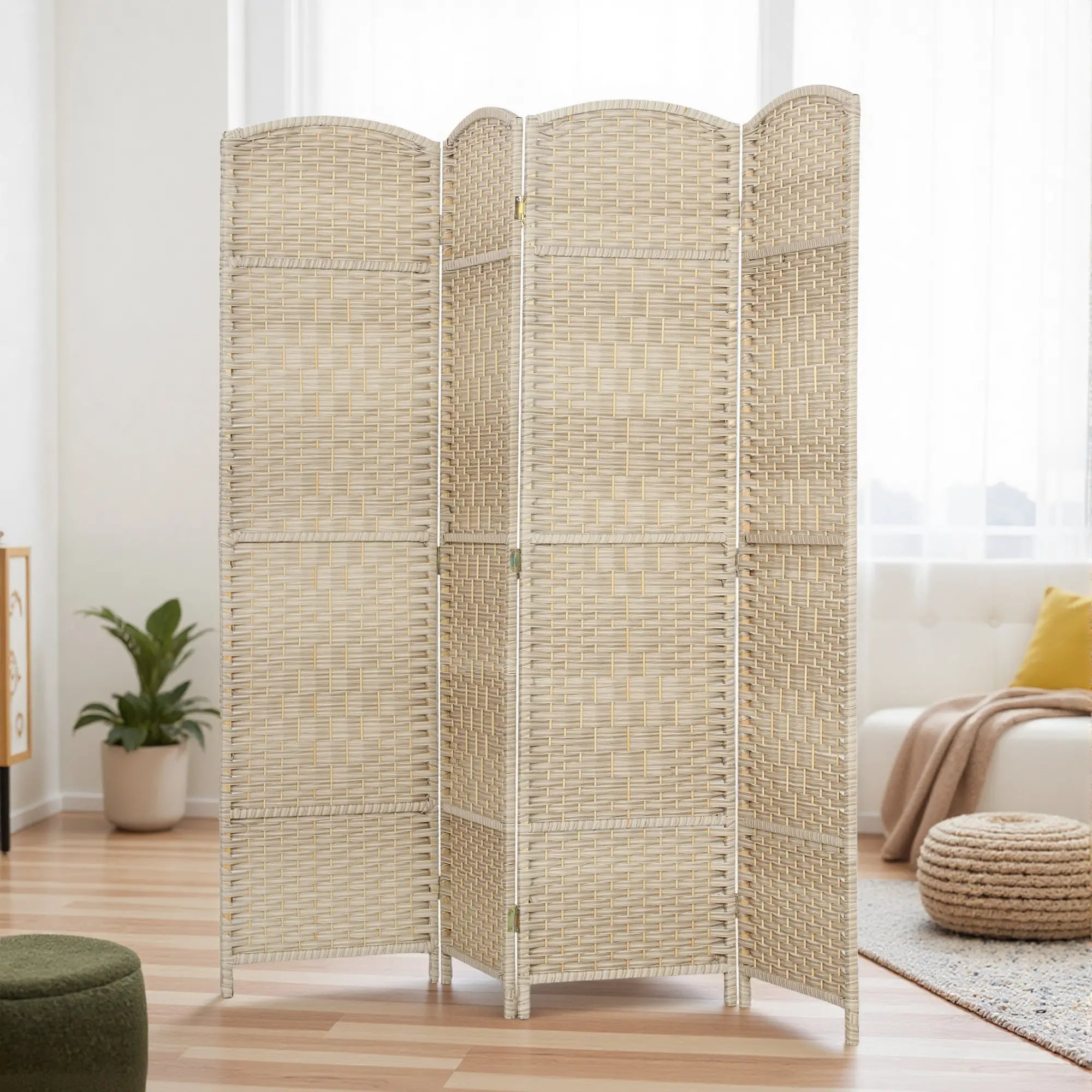 6 Ft Tall Folding Room Divider, 4 Panel Privacy Screen, Light Oak