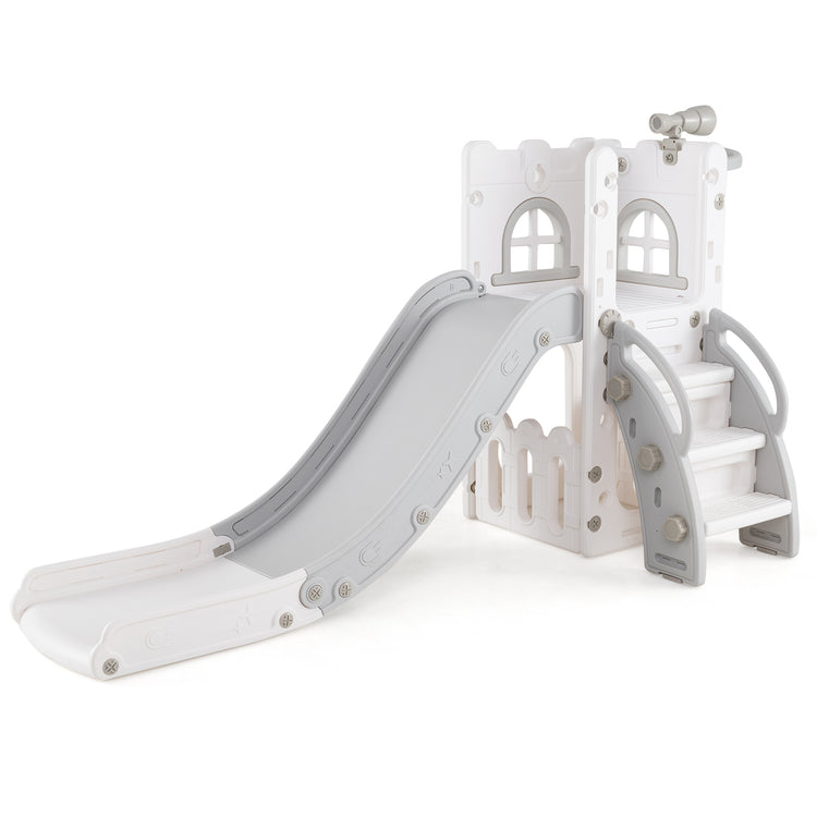 6-in-1 Toddler Slide L-shaped Playground with Basketball Hoop and Ladder, Gray