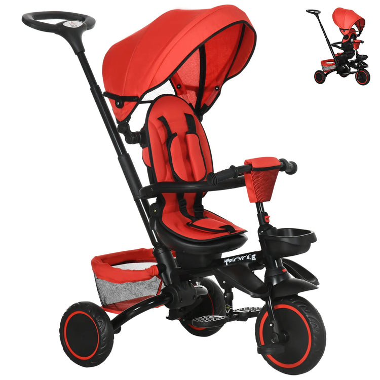 6-in-1 Toddler Tricycle, Foldable, Adjustable Seat, Push Handle, Red