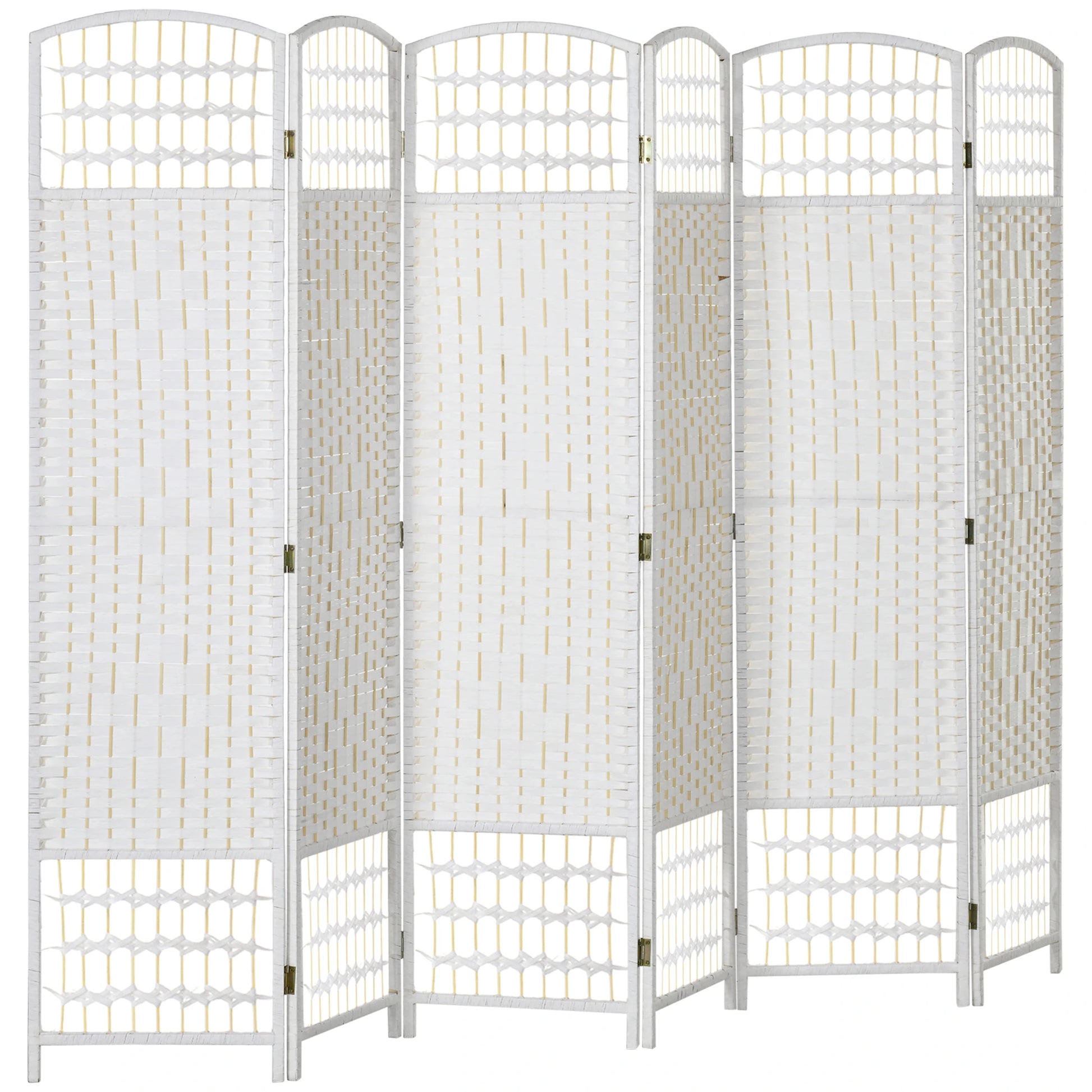 6 Panel Folding Room Divider, Portable Privacy Screen, White