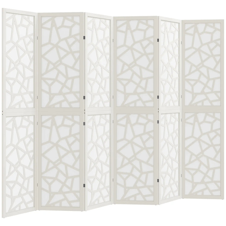 6 Panel Room Divider, 5.6 FT, Geometric Pattern Privacy Screen, White