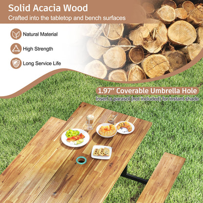 6-Person Acacia Wood Picnic Table with 2 Built-In Benches, Brown